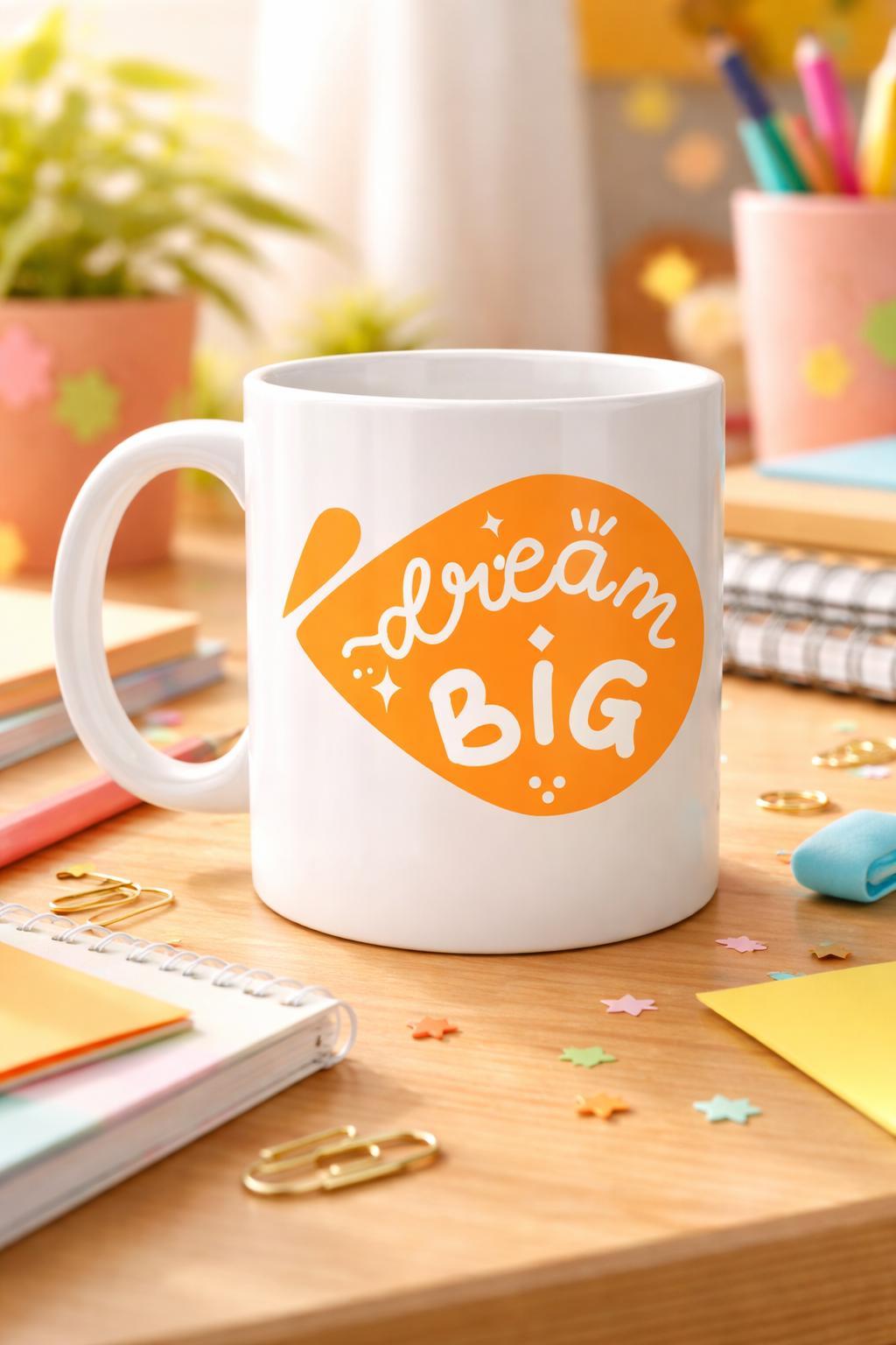Turuncunun sıcak ve enerjik tonu; umut, yaratıcılık ve pozitif düşünceyi simgeler. Üzerindeki “Dream Big” yazısı ise hayallerinden vazgeçmemen gerektiğini hatırlatan tatlı bir mesaj gibidir. Sabah kahveni içerken, ders çalışırken ya da ofiste mola verirken seni motive edecek küçük ama etkili bir detaydır.