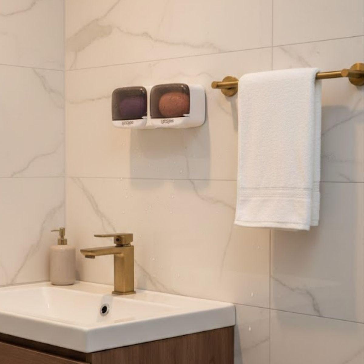 Duvara Monte İkili Kapaklı Plastik Katı Sabunluk Organizer