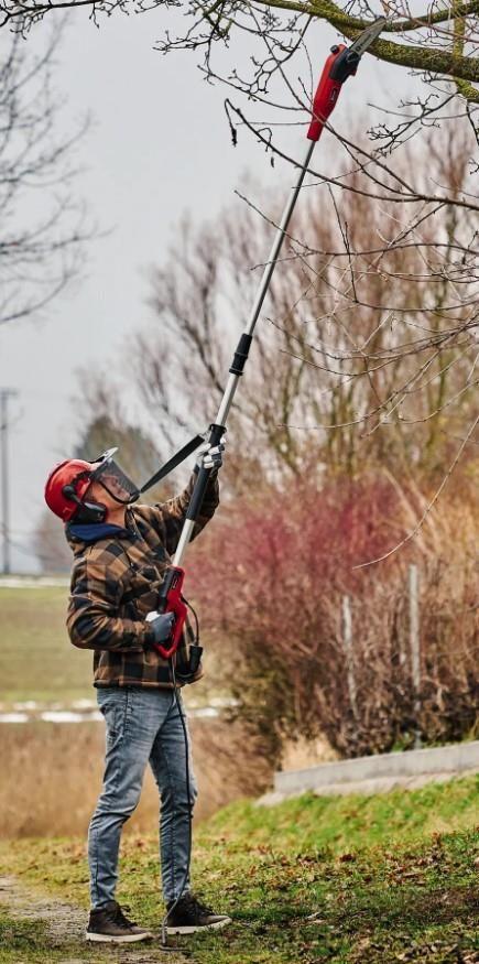 Uygulama – Elektrikli levrek budayıcı GC-EC 7520 T Einhell yüksek dalların kesilmesini ve kesilmesini sağlar.