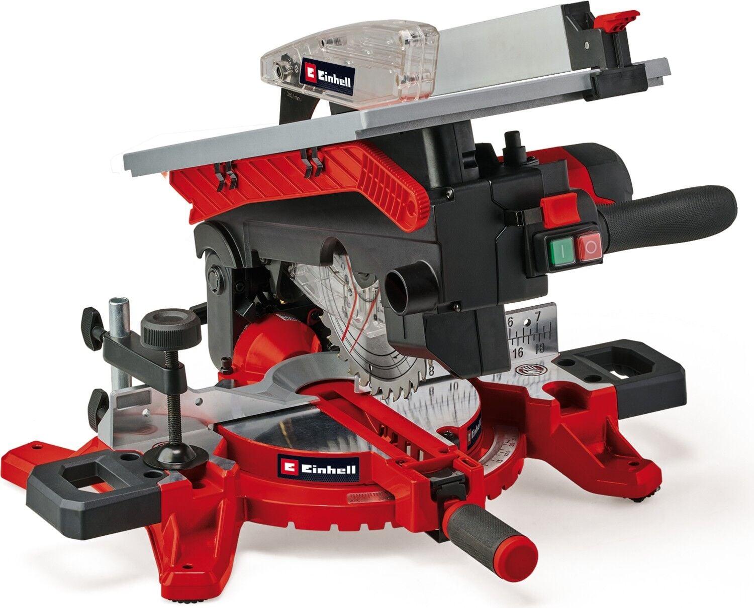 Einhell üst tablalı gönye testere TE-MS 216 T, atölyede veya hobi bodrumunda güçlü ve çok yönlü bir çalışma aracıdır. 1500 watt çıkış gücü ve 4500 dev/dak rölanti devri ile ahşap, kaplamalı paneller veya plastik gibi malzemeler üzerinde güçlü ve hassas bir şekilde çalışır. Temiz ve hassas, 36 dişe sahip yüksek kaliteli Ø 216 mm karbür uçlu testere bıçağı, iş parçalarını 45°'ye kadar açıyla keser. 90° x 90° (testere tablası x testere kafası) ayarında maksimum kesme derinliği 55 mm ve maksimum kesme genişliği 120 mm'dir. Çapraz kesim gönye testeresi kolayca ve alet kullanmadan bir tablalı daire testereye dönüştürülebilir ve sabitlenebilir. Bu durumda, ayarlanabilir yırtma çiti düz kesimler sağlar. Döner tabla, 45°'ye kadar bir açıyla sola ve sağa doğru istenildiği gibi ayarlanabilir - bir açı ölçeği optimum konuma yardımcı olur. Mükemmel gönye kesimleri elde etmek için testere kafası 45°'ye kadar sola yatırılabilir. Kesim, entegre bir kesim çizgisi lazeri ile işaretlenir. Cihazın solunda ve sağında iş parçası destekleri vardır, böylece daha uzun iş parçaları bile kolayca işlenebilir. Sıkıştırma cihazı, çalışma malzemelerinin sabitlenebildiği ek güvenlik sunar. Entegre Ø 36 mm emiş bağlantıları, örneğin tüm Einhell ıslak-kuru elektrikli süpürgelerin bağlanabileceği, temiz çalışma sağlar.