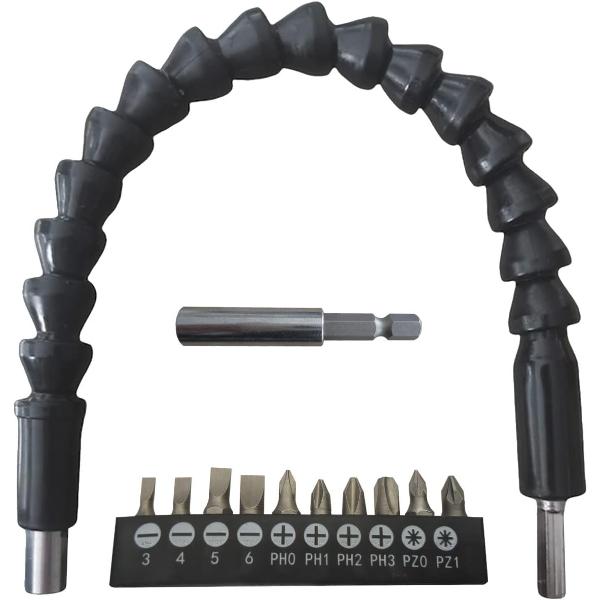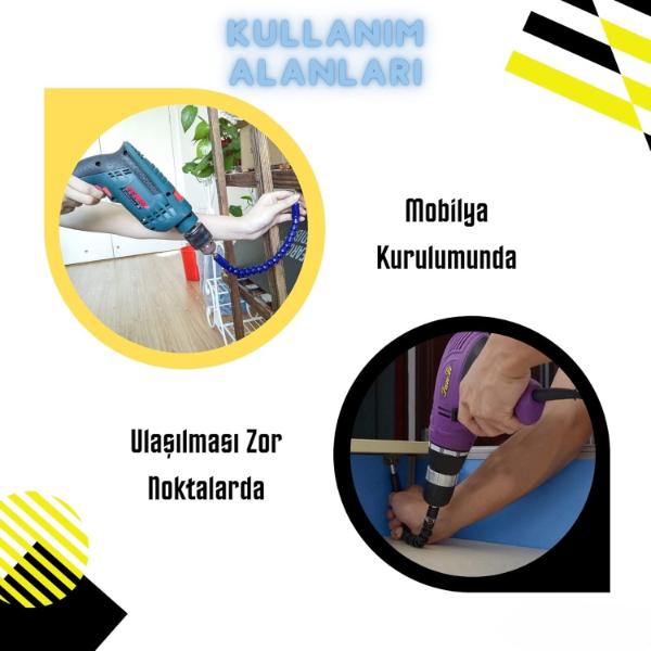 Esnek şaftlı tornavida ucu seti, Phillips (Yıldız), düz uçlu, Torx (Yıldız-çentikli), Hex (Altıgen) gibi çeşitli uç tipleriyle farklı vida başlıklarına uyum sağlar. PH, H, T, SL gibi uç tipleriyle geniş bir kullanım alanı sunar. Esnek uzatma aparatı, ulaşılması zor yerlerde vidalama yapmanıza imkan tanır (örneğin mobilya köşeleri, dar alanlar gibi). Uç kısmı manyetiktir, böylece vida uçları kolayca tutturulur ve düşmez. Elektrikli matkap, vidalama makinesi veya manuel tornavida ile uyumludur. Evde tamir işleri, mobilya montajı, elektronik cihaz açma işlemleri için oldukça kullanışlıdır. Esnek şaftı 360 derece bükülebilir, bu da sert açılarda rahat çalışmanızı sağlar.