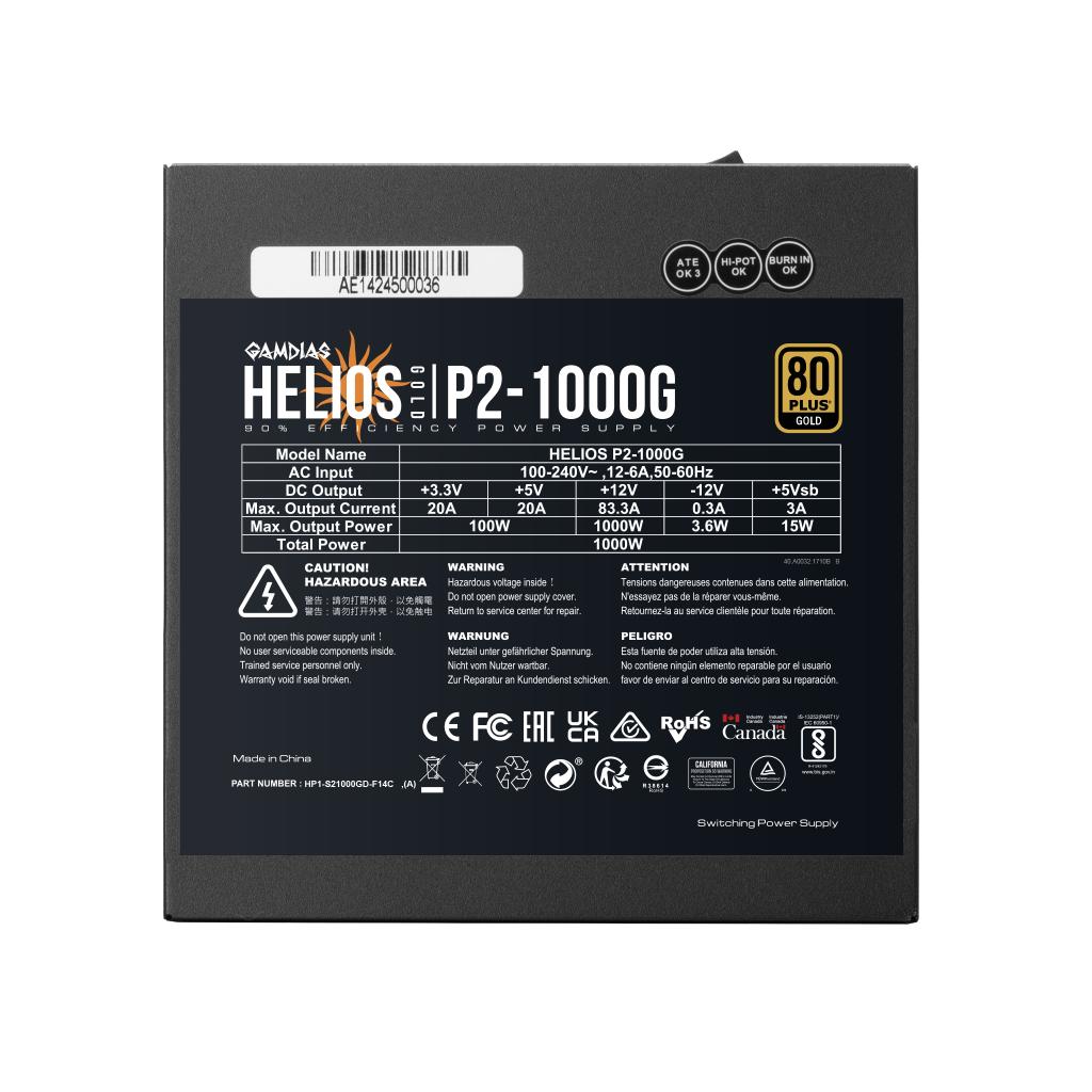 GAMDIAS HELIOS P2-1000G, 1000W, 80+ Gold, Full Modüler, Aktif PFC, GAMING, ATX, Power Supply (PSU) | |