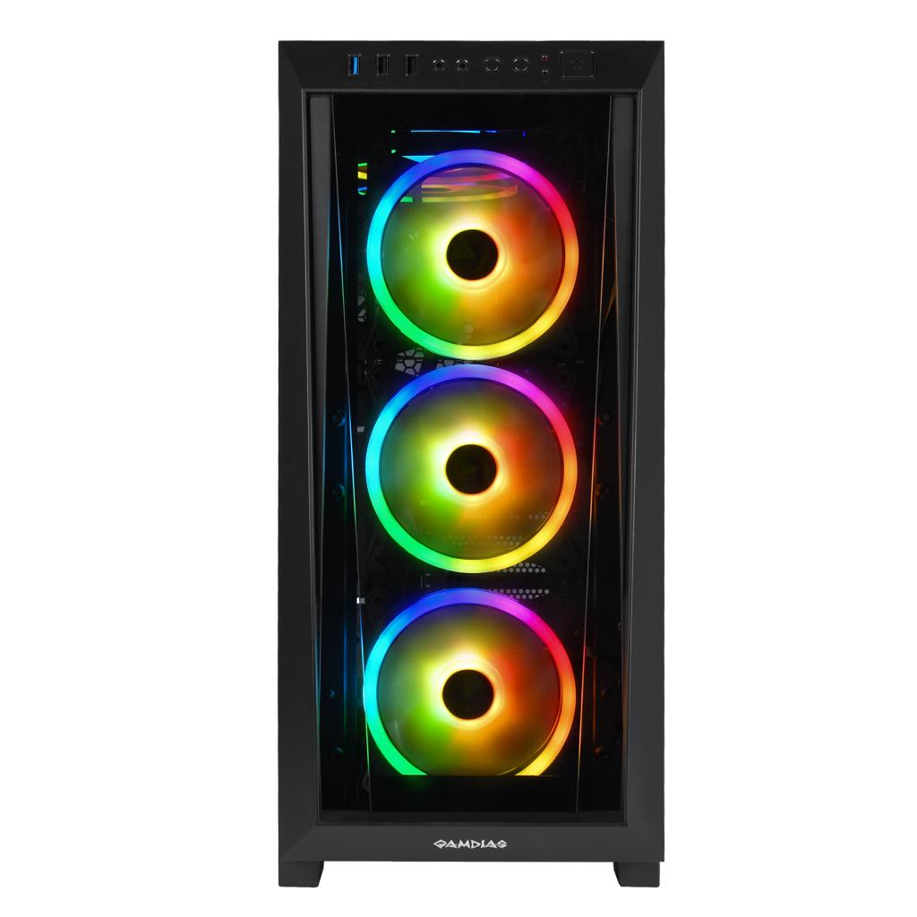 ŞIK TASARIMTrapez temperli cam, doğal hava akışı için mükemmel bir ortam yaratırken, kasanın keskin ve modaya uygun stilini daha da geliştirmek için ARGB fanlarının parlaklığını hafifçe yansıtıyor. | |