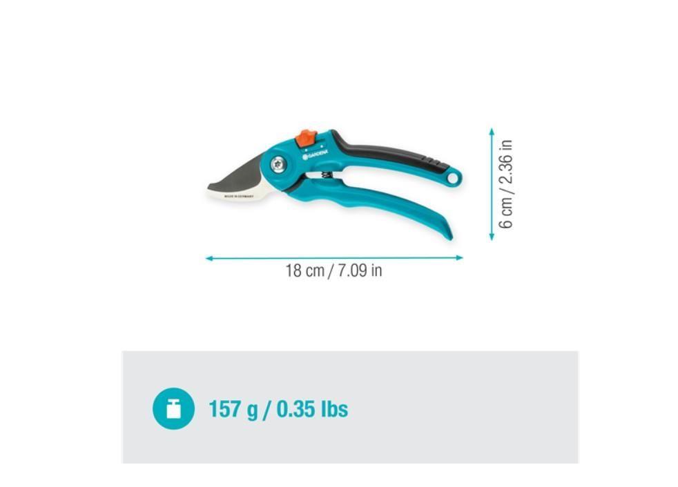 GARDENA Klasik Budama Makası yapışmaz kaplamalı üst bıçağı ve paslanmaz çelikten yapılmış alt bıçağı ile çiçekleri ve genç filizleri, sürgünleri kesmek için mükemmeldir. Ergonomik şekilli sapları ve üst sapının ilave yumuşak bileşenleri kesme işlemi sırasında maksimum konfor sağlar. Budama makasında güvenli şekilde muhafaza edilebilmesini sağlayan tek elle çalıştırılan pratik bir emniyet kilidi bulunmaktadır. 25 yıl garanti süresi.