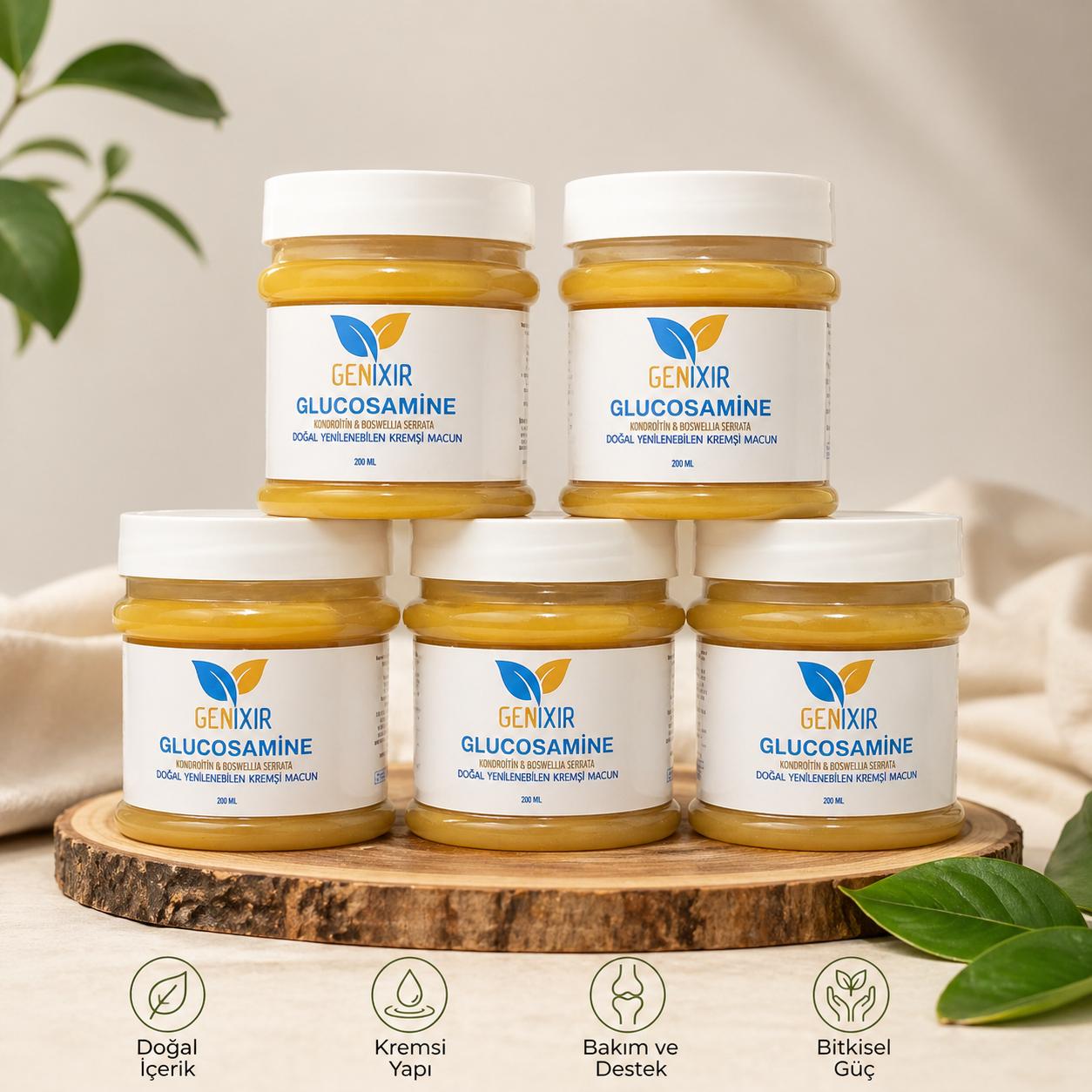 glucosamine krem, glukozamin krem 200 ml, bitkisel krem macun, kondroitin krem, masaj kremi, doğal içerikli krem, bitkisel bakım ürünü, yoğun kıvamlı krem, genixir krem