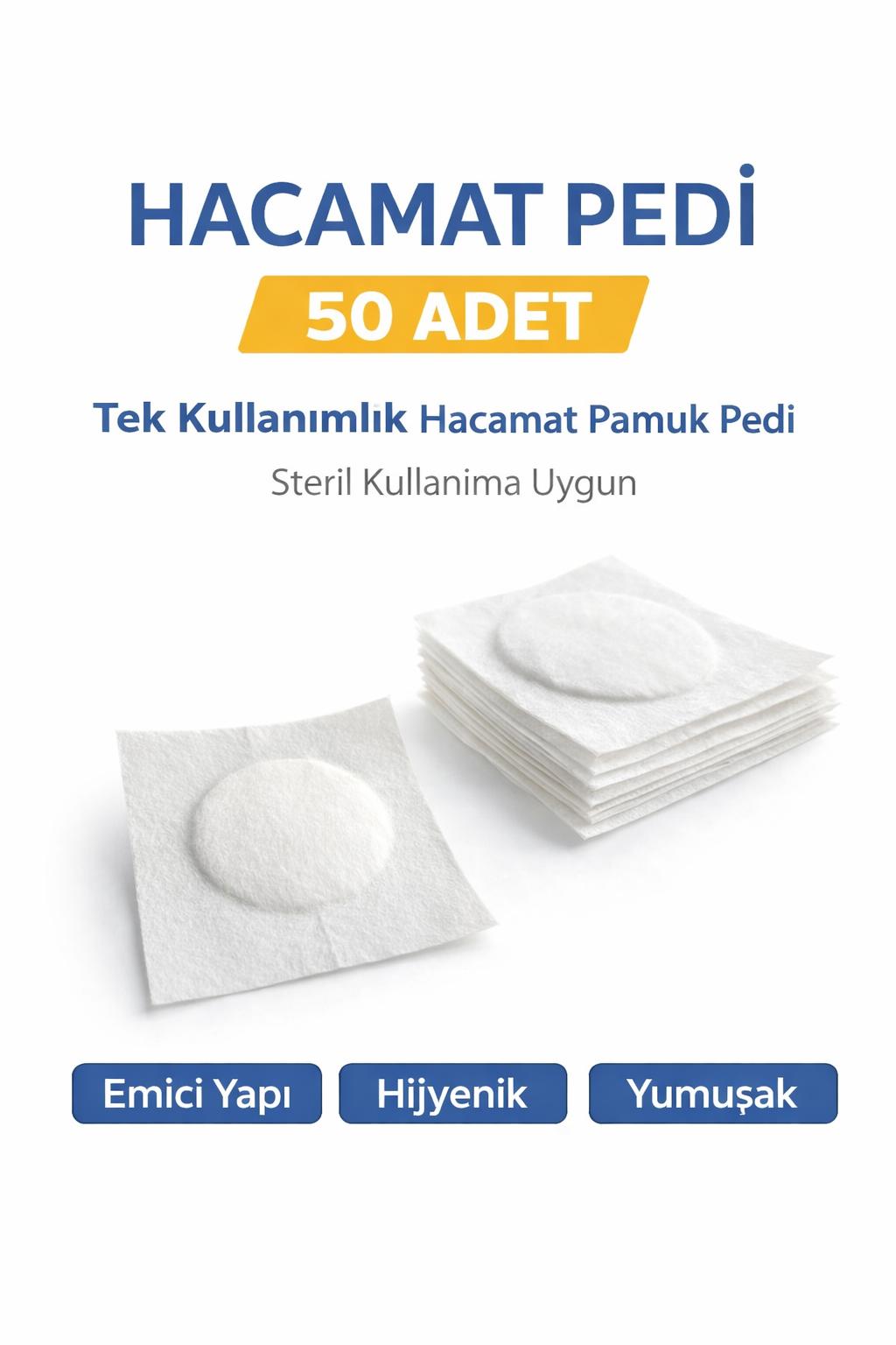 hacamat pedi, hacamat pamuk pedi, hacamat pamuğu, tek kullanımlık hacamat pedi, 50 adet hacamat pedi, hacamat malzemeleri, hacamat ekipmanları, hijyenik hacamat pedi, emici pamuk pedi, medikal pamuk ped