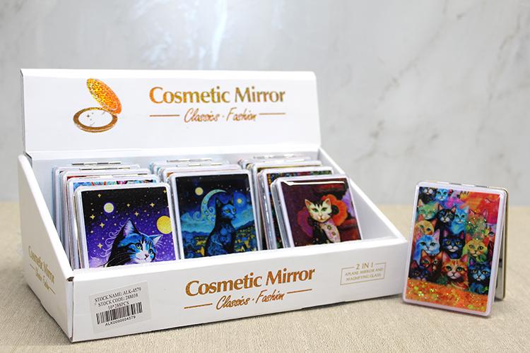 1 adet hareketli sulu detaylı kedi figürlü el aynası