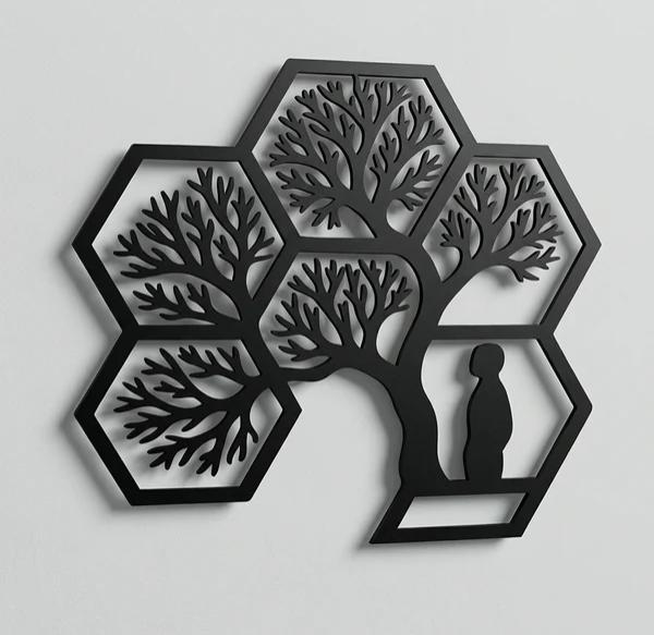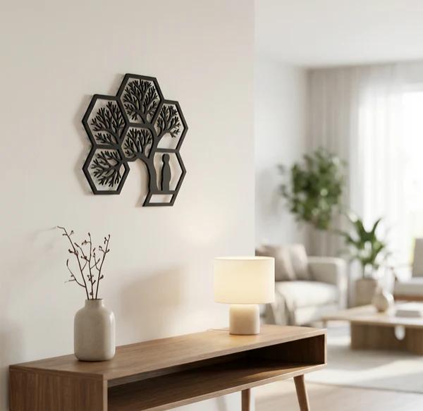 hayat ağacı duvar tablosu, geometrik duvar dekoru, altıgen duvar süsü, mdf duvar tablosu, lazer kesim duvar dekoru, modern duvar dekorasyonu, doğa temalı duvar süsü, salon duvar aksesuarı, yatak odası duvar dekoru, ofis duvar süsü, dekoratif tablo modelleri, duvar aksesuarları, yaşam ağacı dekoru, ahşap görünümlü tablo