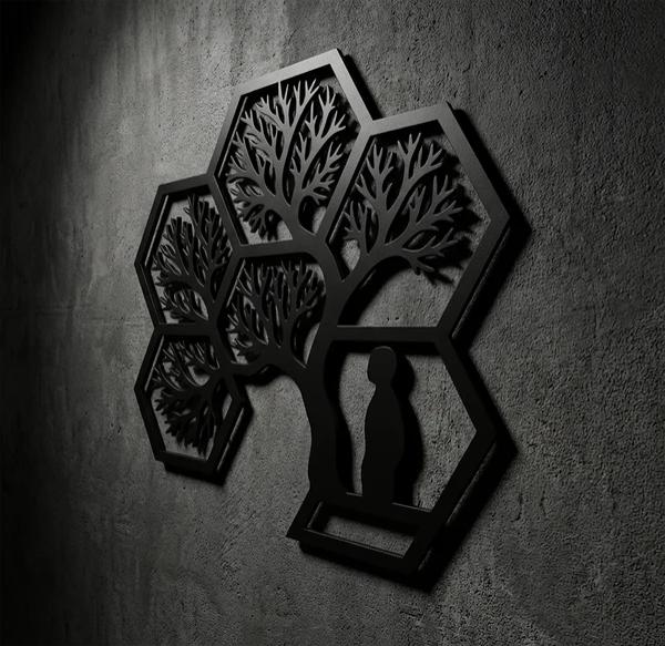 Hayat Ağacı Duvar Tablosu MDF Lazer Kesim Altıgen Geometrik Modern Duvar Süsü