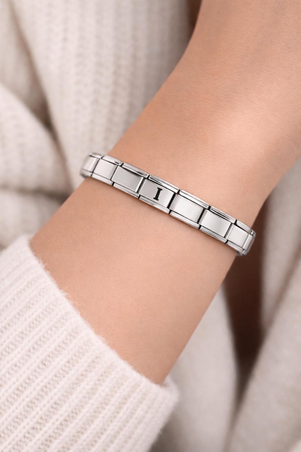 I harfli çelik bileklik, minimal ve zarif tasarımıyla stilinize hem şıklık hem de kişisel bir dokunuş katar.