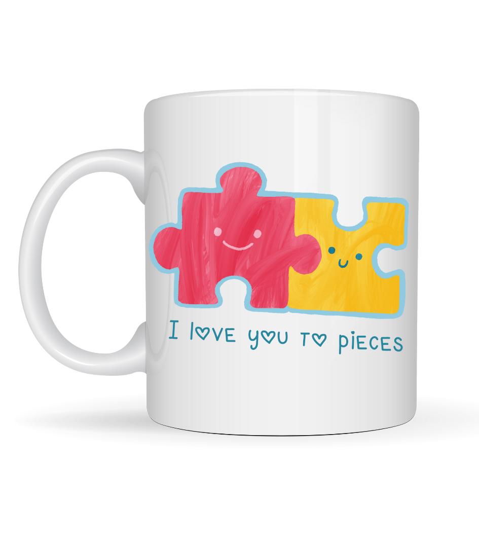 Model 14 – I Love You To Pieces Porselen Kupa, sıcak tasarımı ve sevimli puzzle figürleriyle sevdiğinize her yudumda gülümseten özel bir hediye seçeneği sunar.