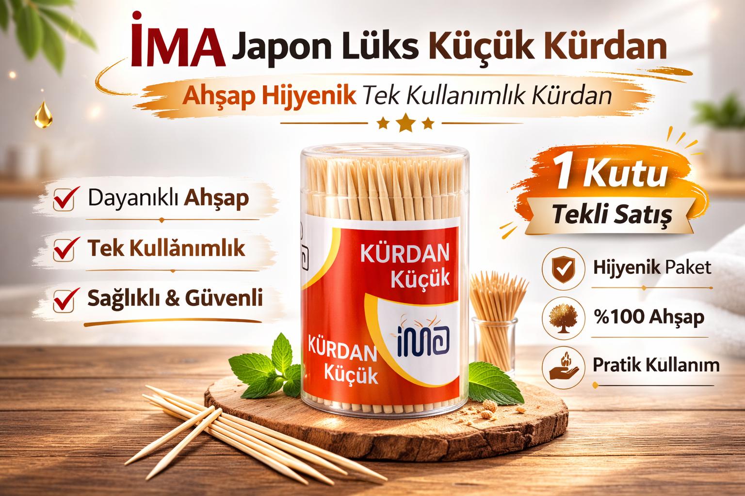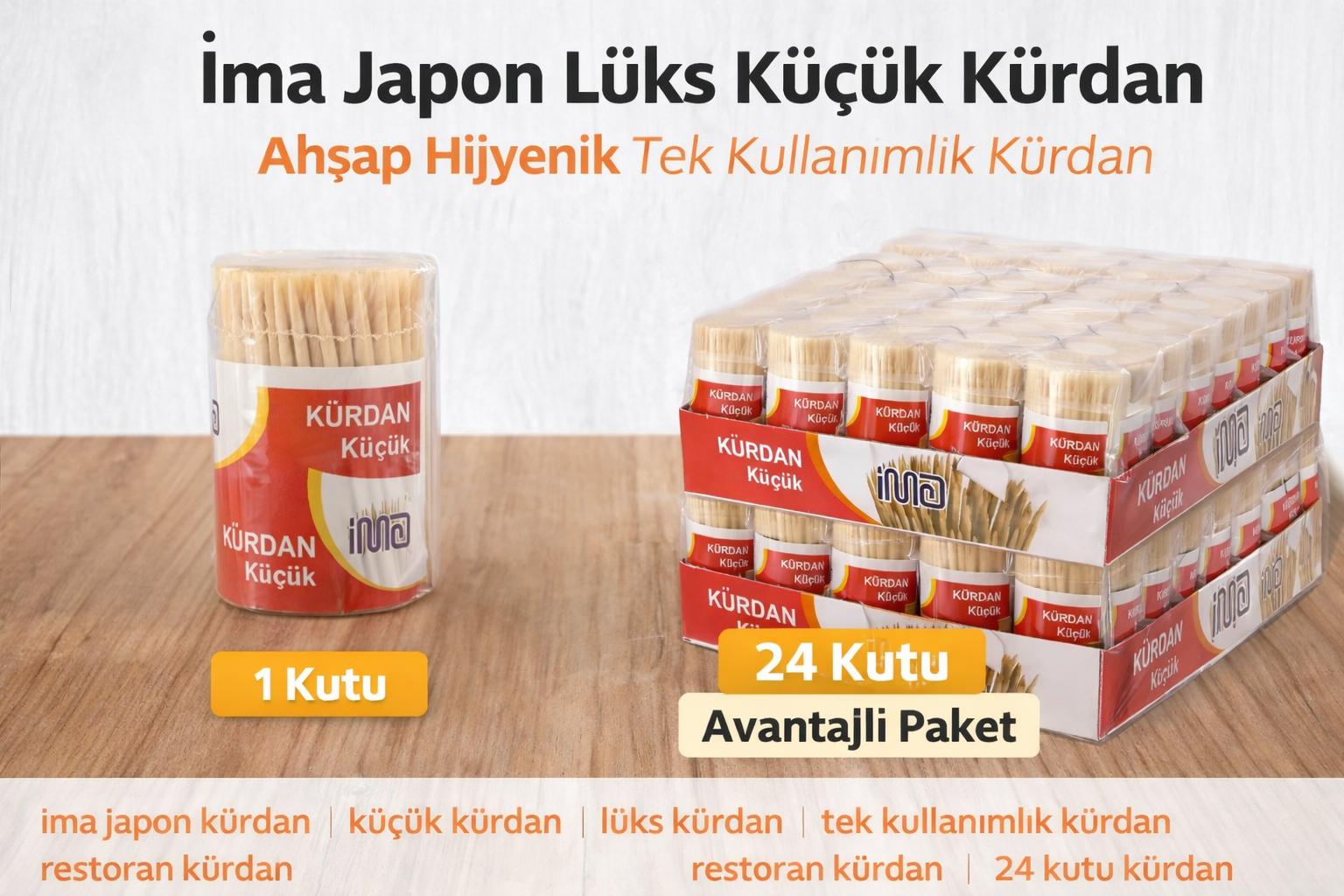 İma Japon Lüks Küçük Kürdan Ahşap Hijyenik Tek Kullanımlık Kürdan 1 Kutu ve 24 Kutu Avantajlı Paket
