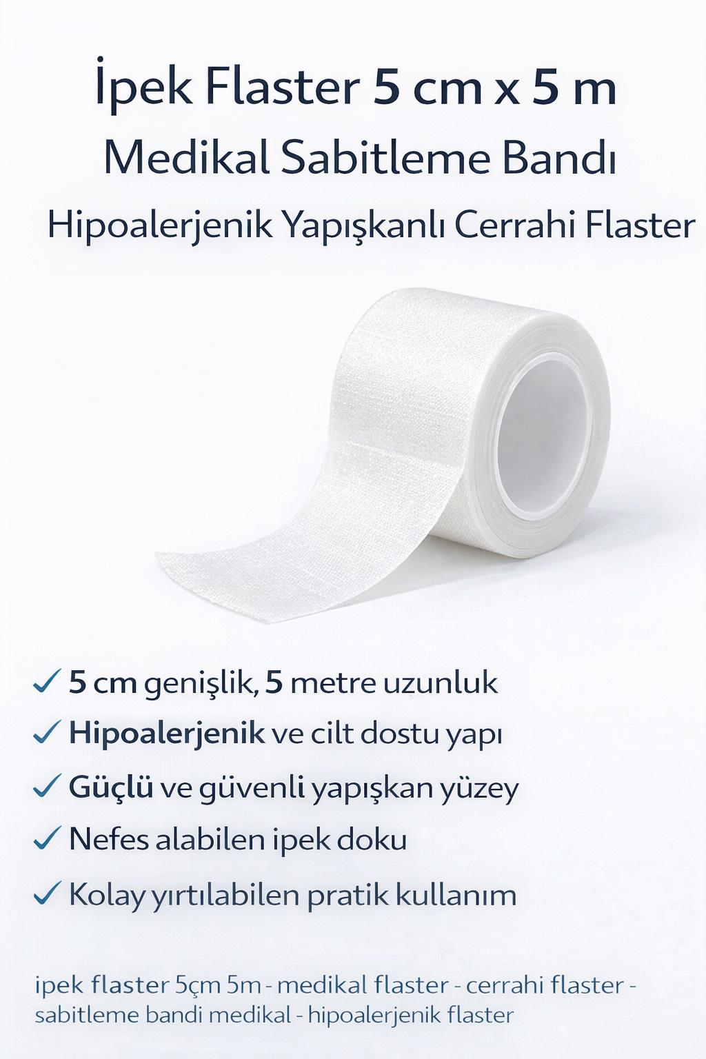 ipek flaster 5cm 5m, medikal flaster, cerrahi flaster, sabitleme bandı medikal, hipoalerjenik flaster, pansuman bandı, tıbbi flaster, ipek flaster bant, hastane flasteri