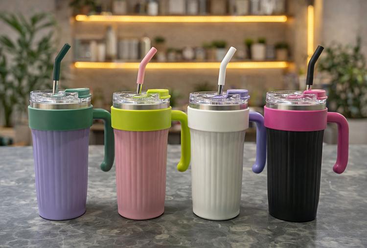 ISI MUHAFAZALI KULPLU VE PİPETLİ ÇELİK TERMOS KUPA BARDAK