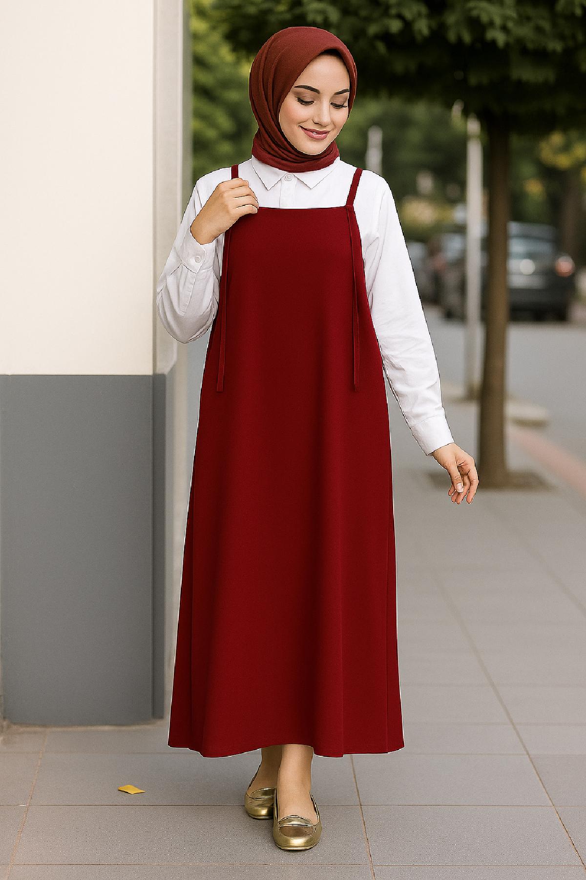 - Her kadının dolabında mutlaka bulunması gereken bu kadın bordo basic ayarlanabilir askılı jile elbise, hem şık hem de rahat kombinler için ideal bir seçim.