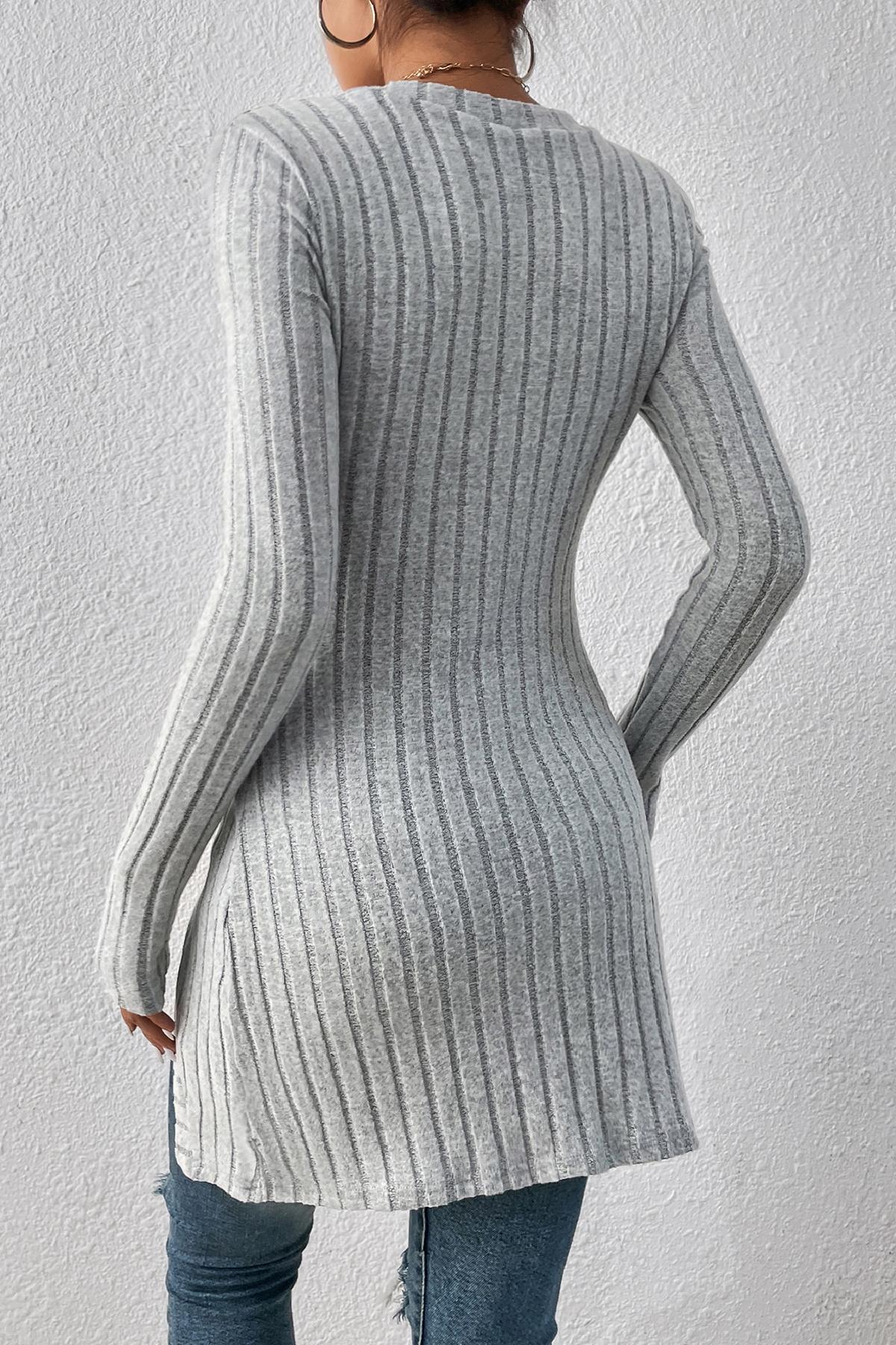 Ürün Adı: Açık Gri Uzun Kollu Fitilli Bluz