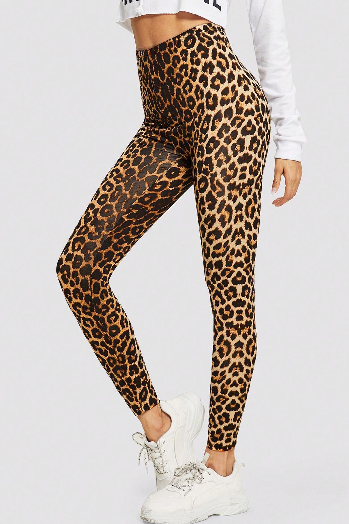 - Leopar Desenli,Dar Kesim ve Esnek Micro Kumaş Tayt