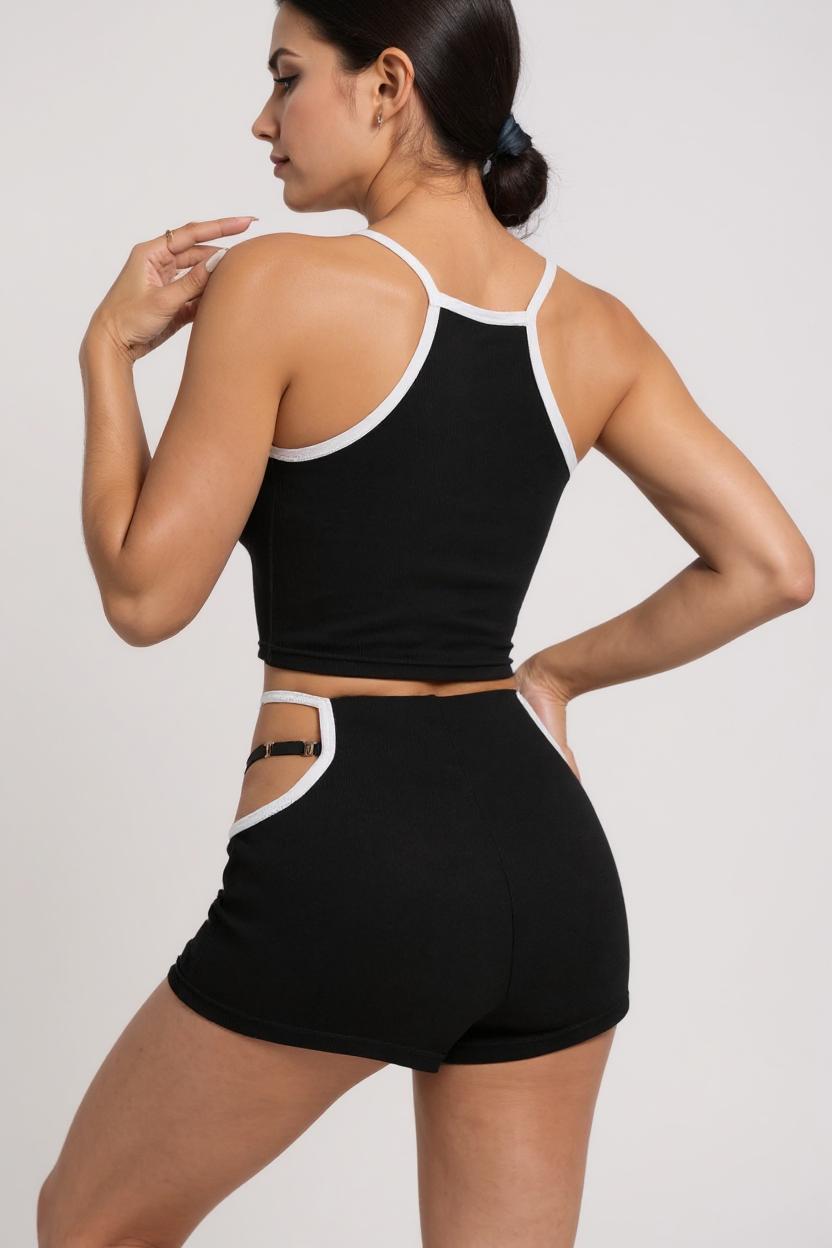 - Siyah Beyaz Lastikli Şorlu Takım.