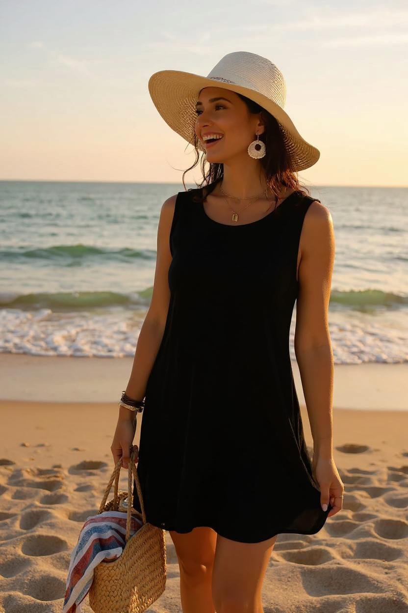 Kolsuz tasarımı sayesinde plajda serin ve rahat hissetmenizi