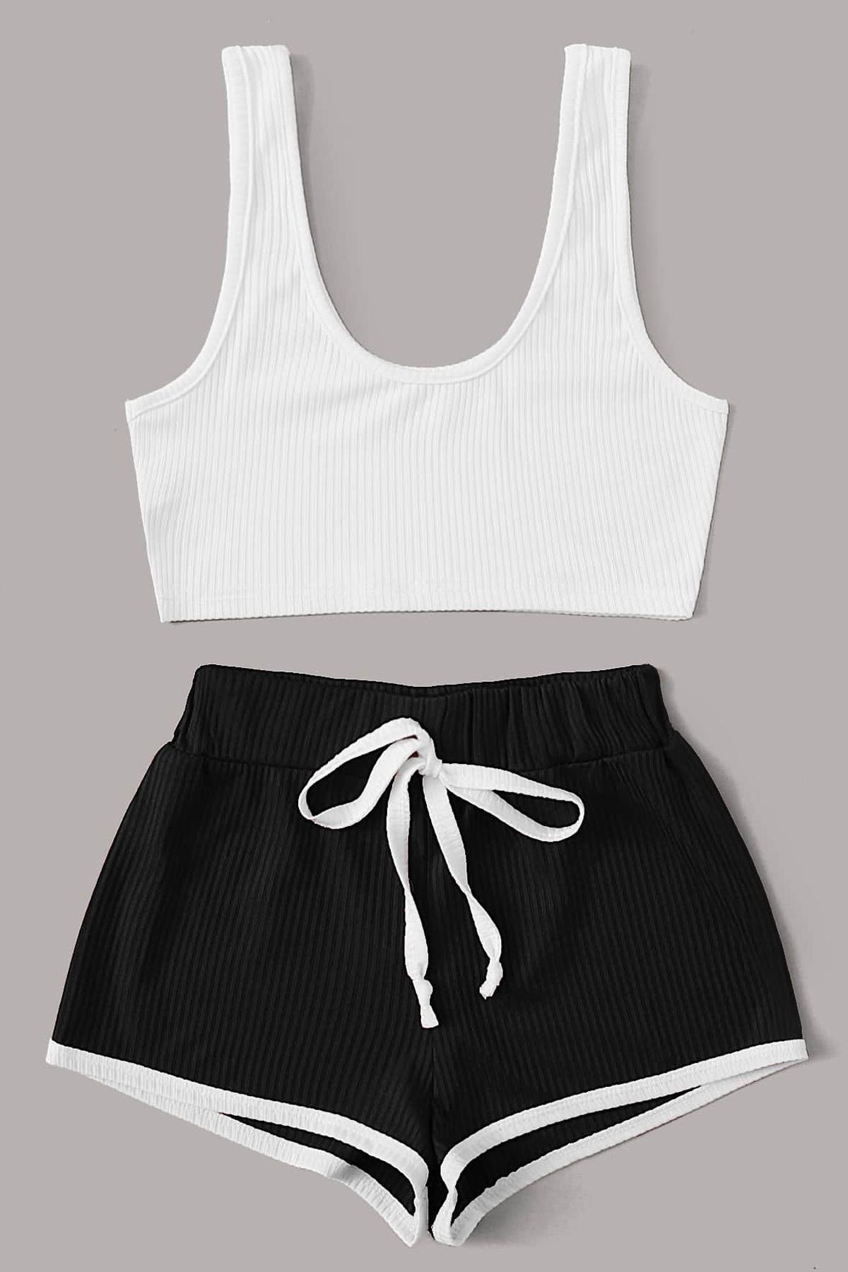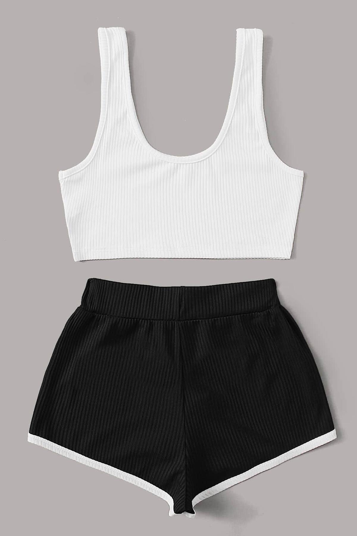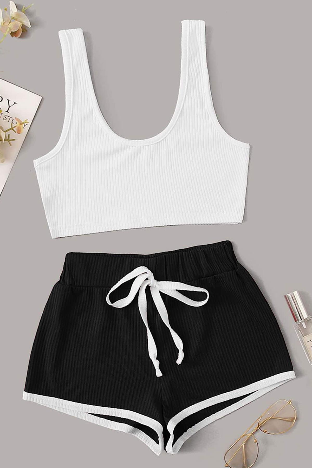 Değişiklik Gösterebilir. Beyaz Askılı Crop Top Siyah