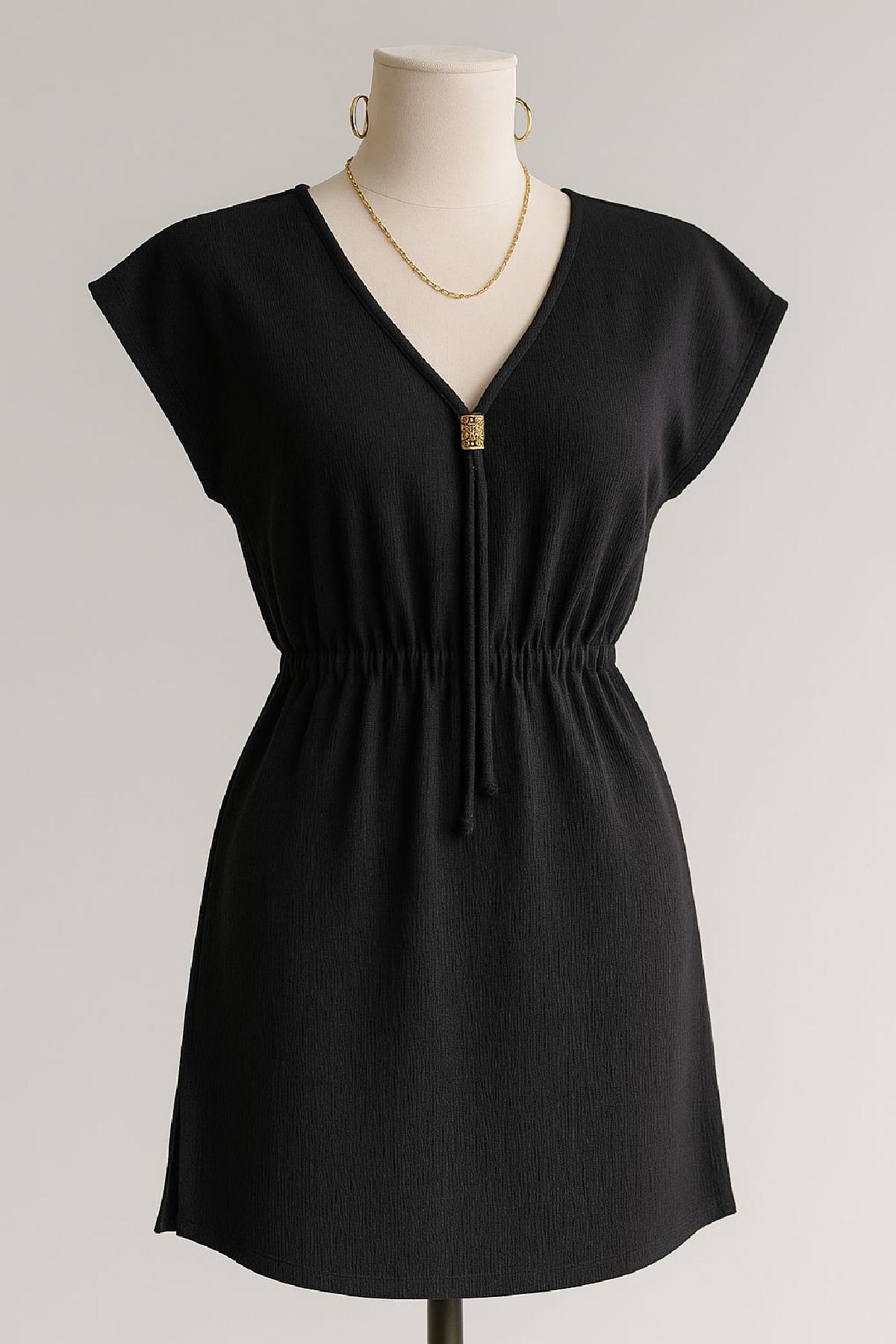 - Her gardıropta mutlaka bulunması gereken bu siyah plaj elbisesi, tatilde, yaz akşamlarında, günlük gezilerde veya arkadaş buluşmalarında sizi hem şık hem de rahat hissettirecek.