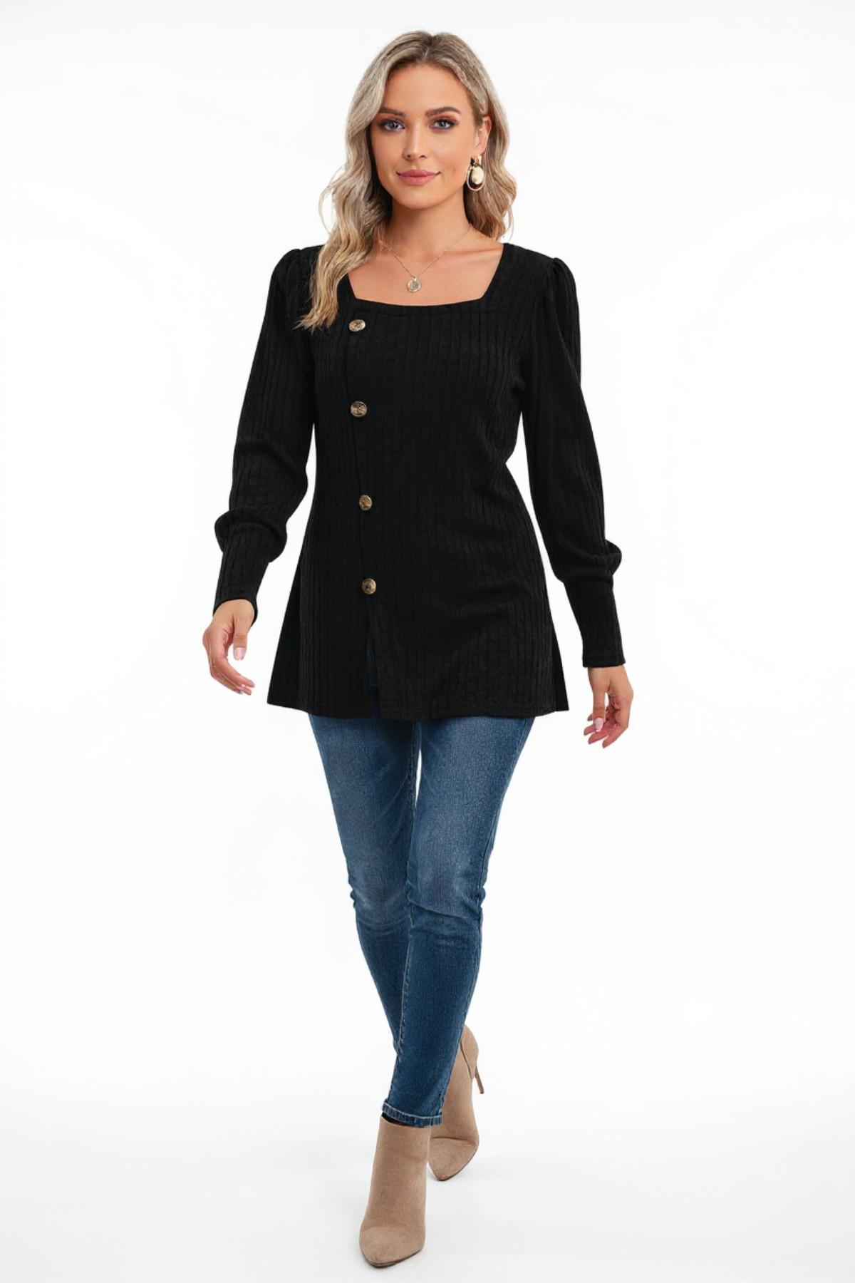 Minimal çizgilerle tasarlanan bu uzun bluz, hem günlük giyimde hem de ofis kombinlerinde rahatlıkla kullanılabilir.
