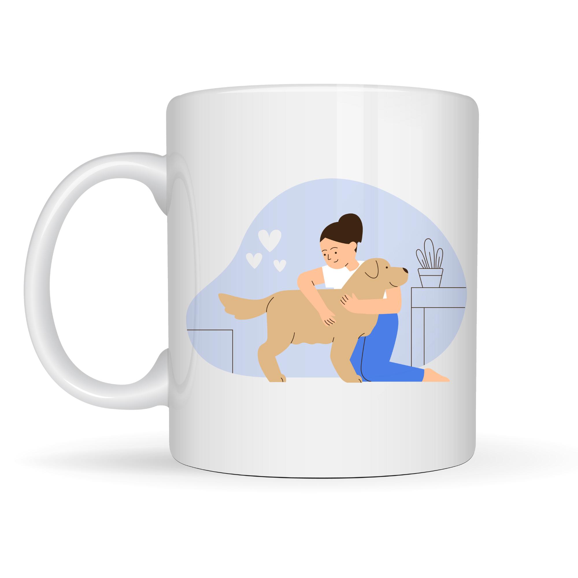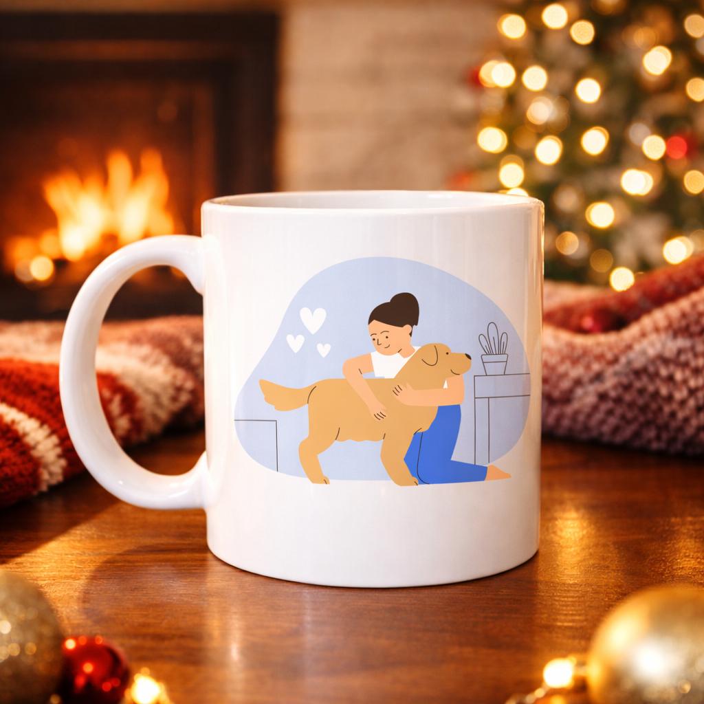Bu özel tasarım kupa, bir kadının köpeğine sarıldığı o saf ve içten anı yansıtarak insan ile hayvan arasındaki koşulsuz sevgiyi anlatır. ????