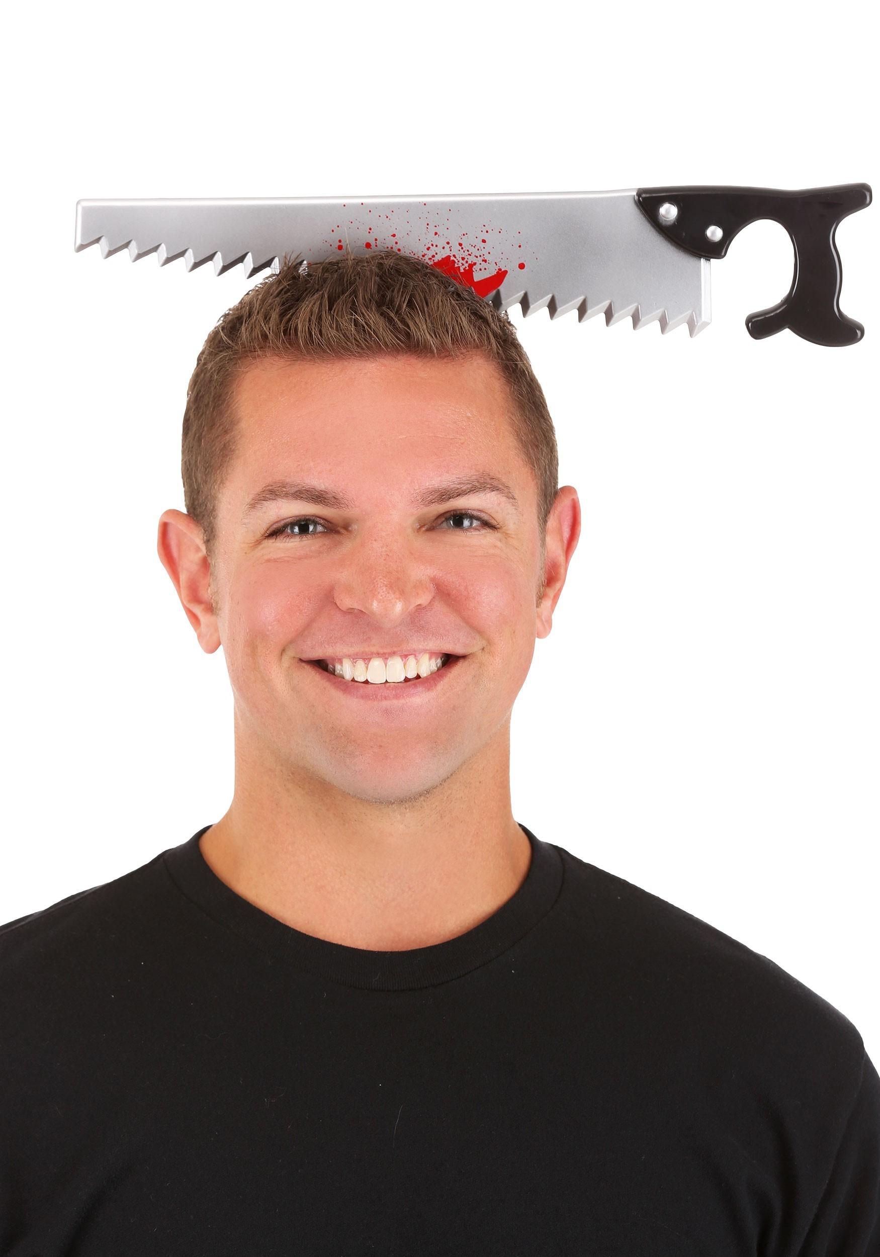 1 adet kafaya saplanmış Halloween kanlı testere şaka tacı