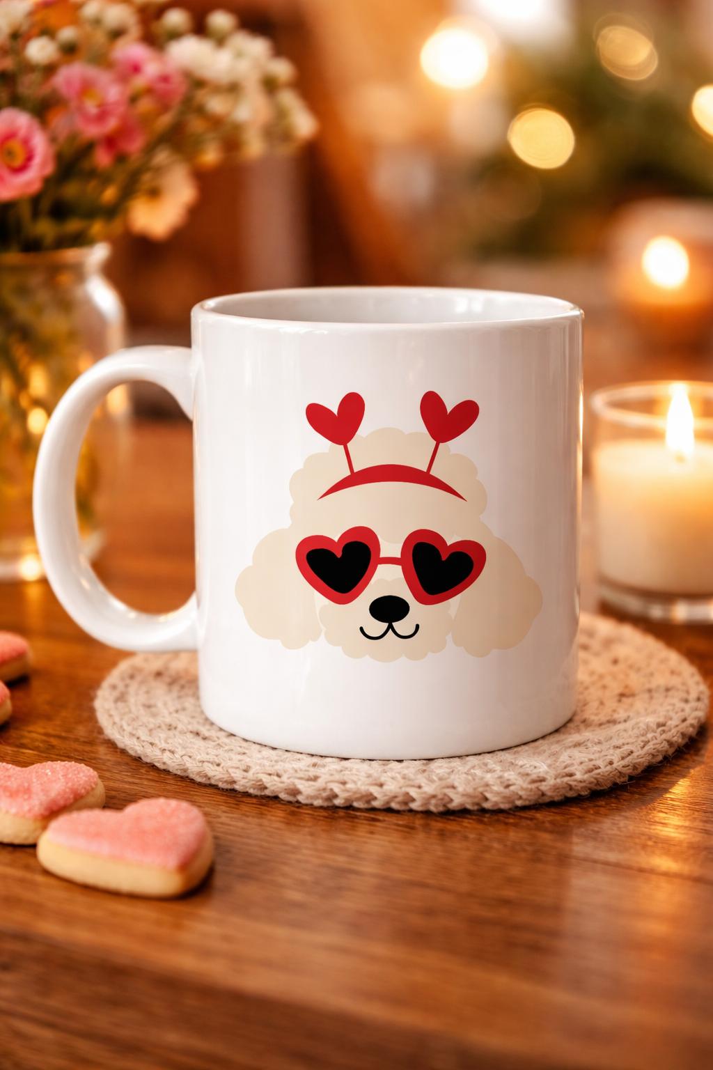 Gülümseten tasarımıyla gününü güzelleştirecek kalpli gözlü sevimli köpek figürlü porselen kupa, sıcak kahvelere, çay molalarına ve tatlı anlara eşlik etmek için tasarlandı ??