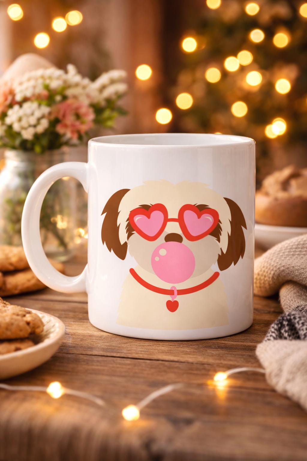 Bu özel porselen kupa üzerinde yer alan kalpli gözlüklü Shih Tzu köpek figürü, sevimliliğiyle ilk bakışta kalpleri fethediyor ????