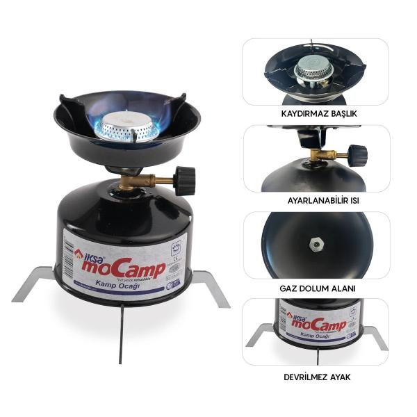 KAMP OCAĞI SETİÜrün ÖzellikleriKamp ocağı seti, taşınabilir ve kompakt yapısıyla outdoor aktivitelerinizde mükemmel bir yardımcıdır. 12 cm çapındaki pişirme alanı, tencere ve tava kullanımı için uygundur. Toplam ağırlığı yaklaşık 400 gram olan bu set, hafif ve pratik bir kullanım sunar. Universal çakmak gazı tüpü ile çalışır ve setin içinde yer alır. Ayarlanabilir alev gücü sayesinde düşükten yükseğe kontrollü pişirme yapabilirsiniz. Dayanıklı metal gövde ve plastik gaz vanası ile uzun ömürlüdür. Piknik, kamp, doğa yürüyüşleri ve acil durumlar için idealdir. Yanma süresi, yakıt kapasitesine bağlı olarak uzun süreli kullanım sağlar.Paket İçeriği1 Adet Kamp Ocağı1 Adet Universal Çakmak Gazı Tüpü1 Adet Metal Üç Ayaklı Denge Aparatı