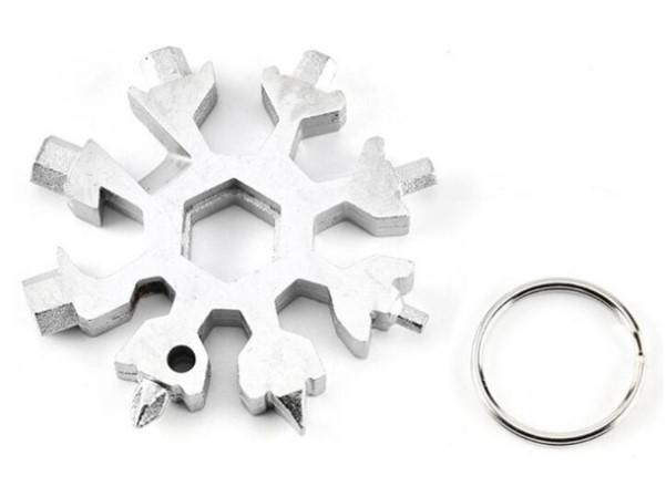 Kar Tanesi Çok Amaçlı Anahtarlık AçacakÜrün ÖzellikleriKar tanesi anahtarları son derece çok yönlüdür. Şişe açacağı, kutu açacağı, tornavida, emniyet çekiç, altıgen anahtar vb. Olarak kullanılabilir.18+1 çeşit düz yıldız tornavida, alyan, civata anahtarı, meşrubat açacağı, koli kesme gibi bir çok işlerinizi tek ürünle çözebilirsiniz.Avuç içine sığan küçük boyutu ile cebinizde veya çantanızda kolaylıkla taşıyabilirsiniz.Paslanmaz çelikten üretilmiştir.Her evde, araçta ve özellikte bisiklette motosiklet gibi ulaşım araçlarında bulunması gereken müthiş bir ürün.Dağcılık veya yürüyüş gibi açık hava sporlarında yanınıza almalısınız. Paket İçeriği1 Adet Kar Tanesi Çok Amaçlı Anahtarlık Açacak