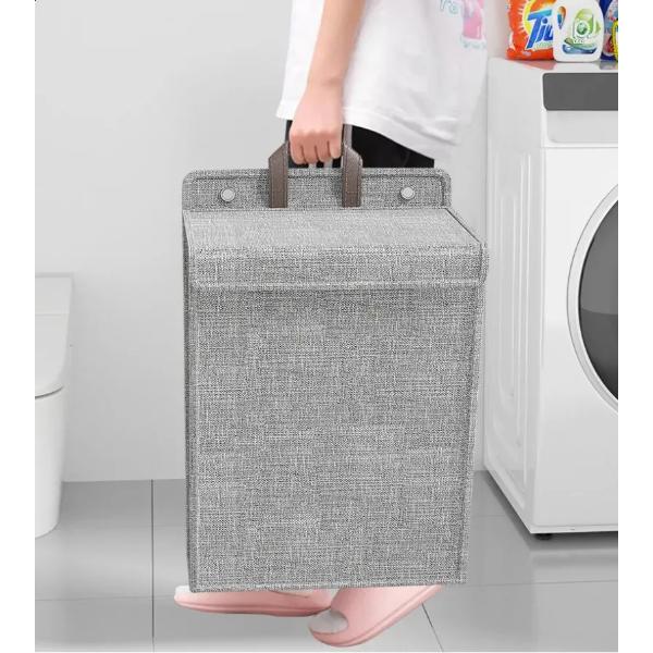 Katlanabilir asılabilir kirli çamaşır sepeti, hem yerden tasarruf sağlayan hem de estetik görünüme sahip fonksiyonel bir üründür. Dayanıklı kumaş malzemeden üretilmiştir ve çamaşır odası, banyo, yatak odası gibi alanlarda rahatlıkla kullanılabilir. Duvara veya kapı arkasına asılabilen özel askı aparatları sayesinde sabitlenebilir; gerektiğinde kolayca çıkarılıp taşınabilir. Sepetin geniş iç hacmi sayesinde günlük kirli çamaşırları toplamak için idealdir. Katlanabilir yapısı sayesinde kullanılmadığında yer kaplamaz. Gri renkli şık tasarımı ile her ortama uyum sağlar. Pratik taşıma sapı ile kullanım kolaylığı sunar.