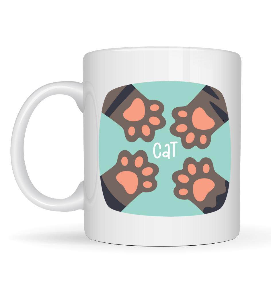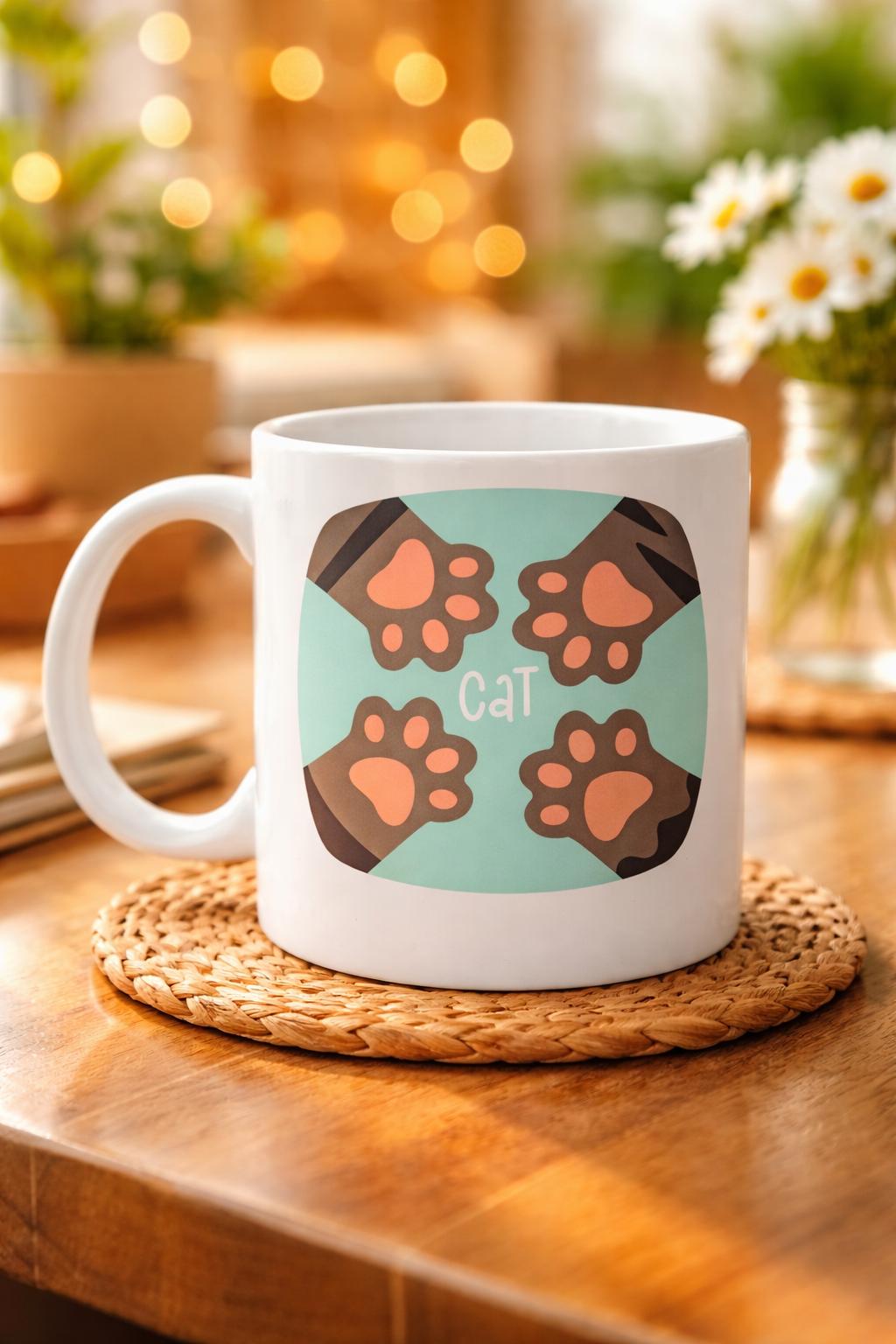 Bu özel tasarım porselen kupa, üzerinde yer alan sevimli kedi patileri ve “Cat” yazısı ile tam bir kedi sever kalbini ısıtan parça!