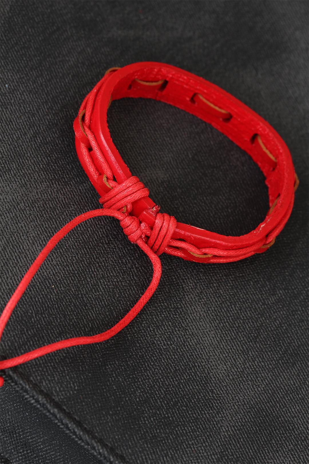 Kombinlerinize Kırmızı Renk Ayarlamalı İpli Deri Erkek Bileklik modeli ile renk katın.