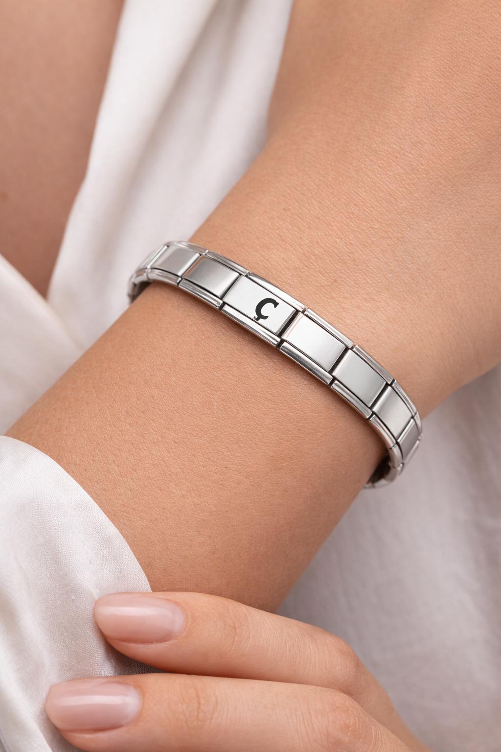Zarif tasarımı ve anlamlı harf detayıyla öne çıkan Ç harfli çelik bileklik, stiline kişisel bir dokunuş katmak isteyenler için tasarlandı.