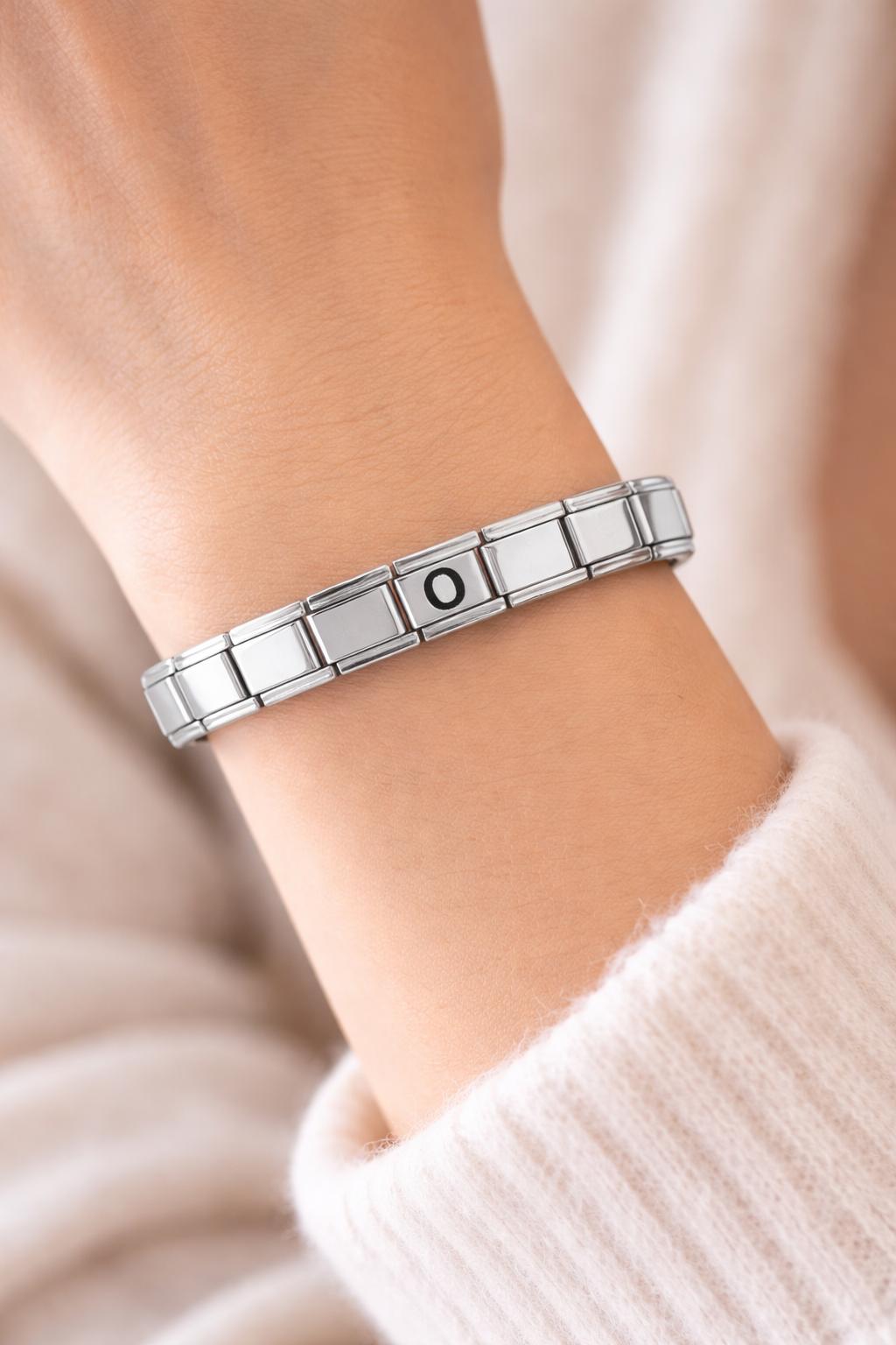 Kişiye Özel O Harfli Çelik Bileklik – İtalyan Charm Model, Ayarlanabilir Bilezik