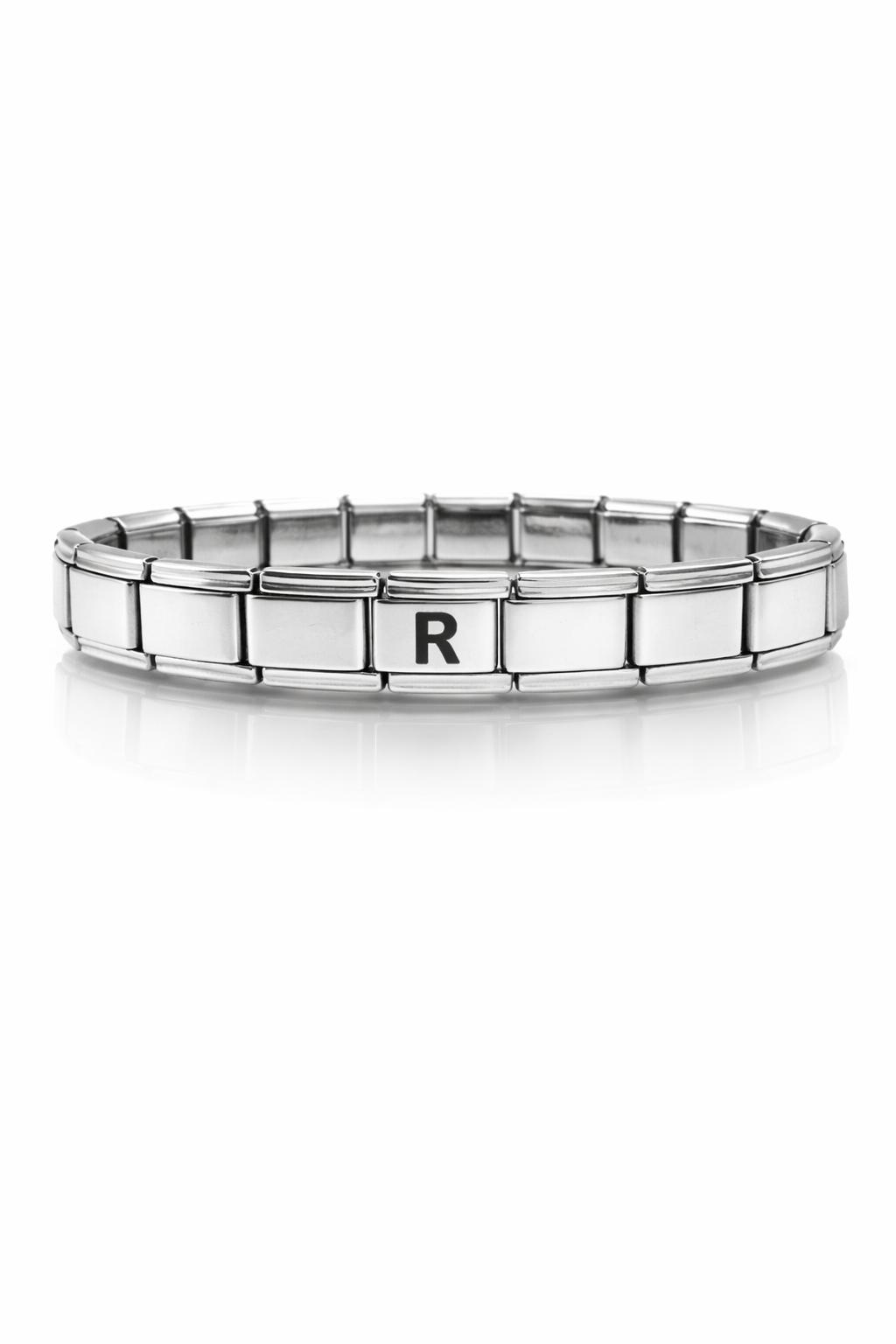 Kişiye Özel R Harfli Çelik Bileklik – İtalyan Charm Bilezik, Ayarlanabilir Zarif Tasarım