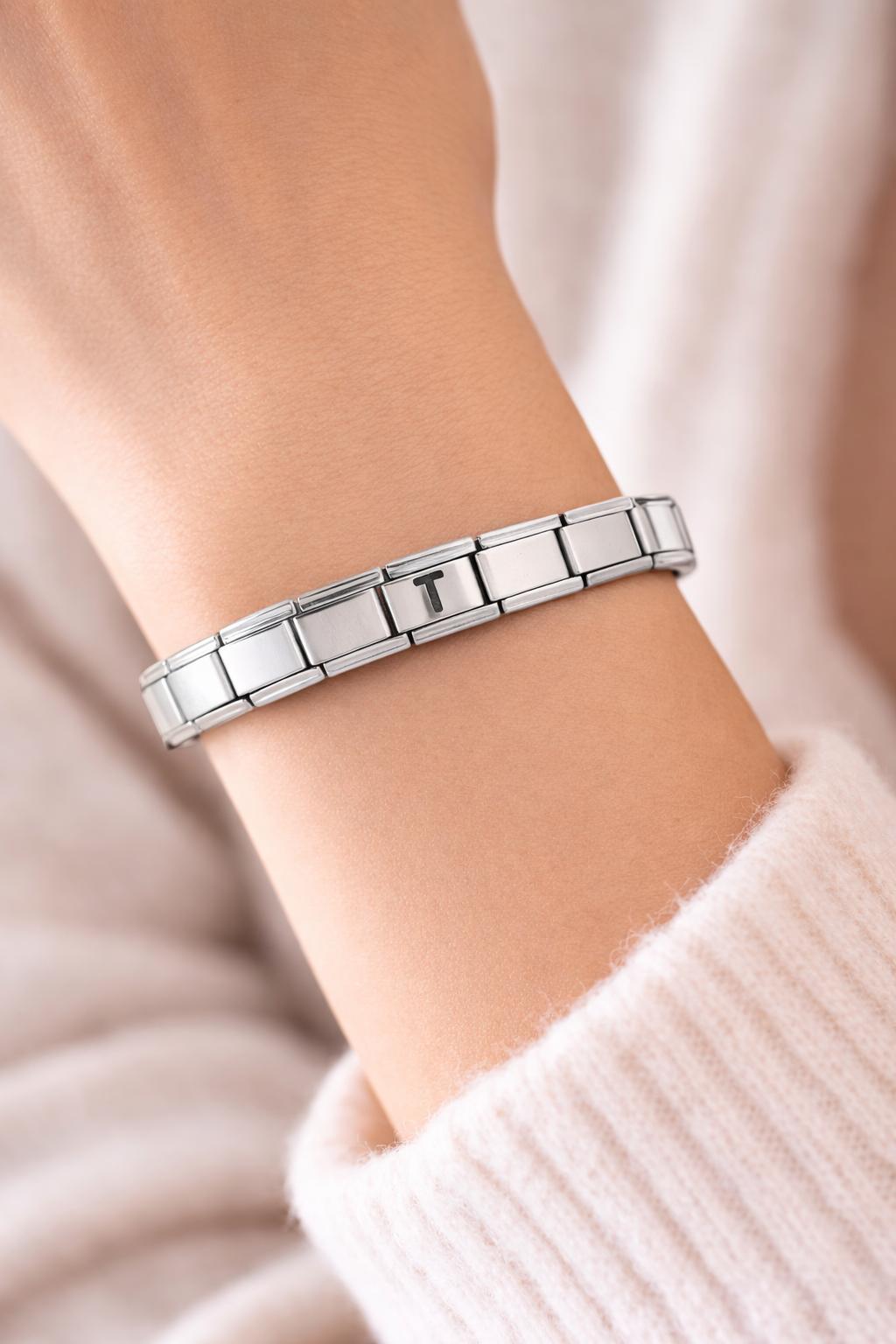 Kişiye Özel T Harfli Çelik Bileklik – İtalyan Charm Bilezik, Ayarlanabilir Zarif Model