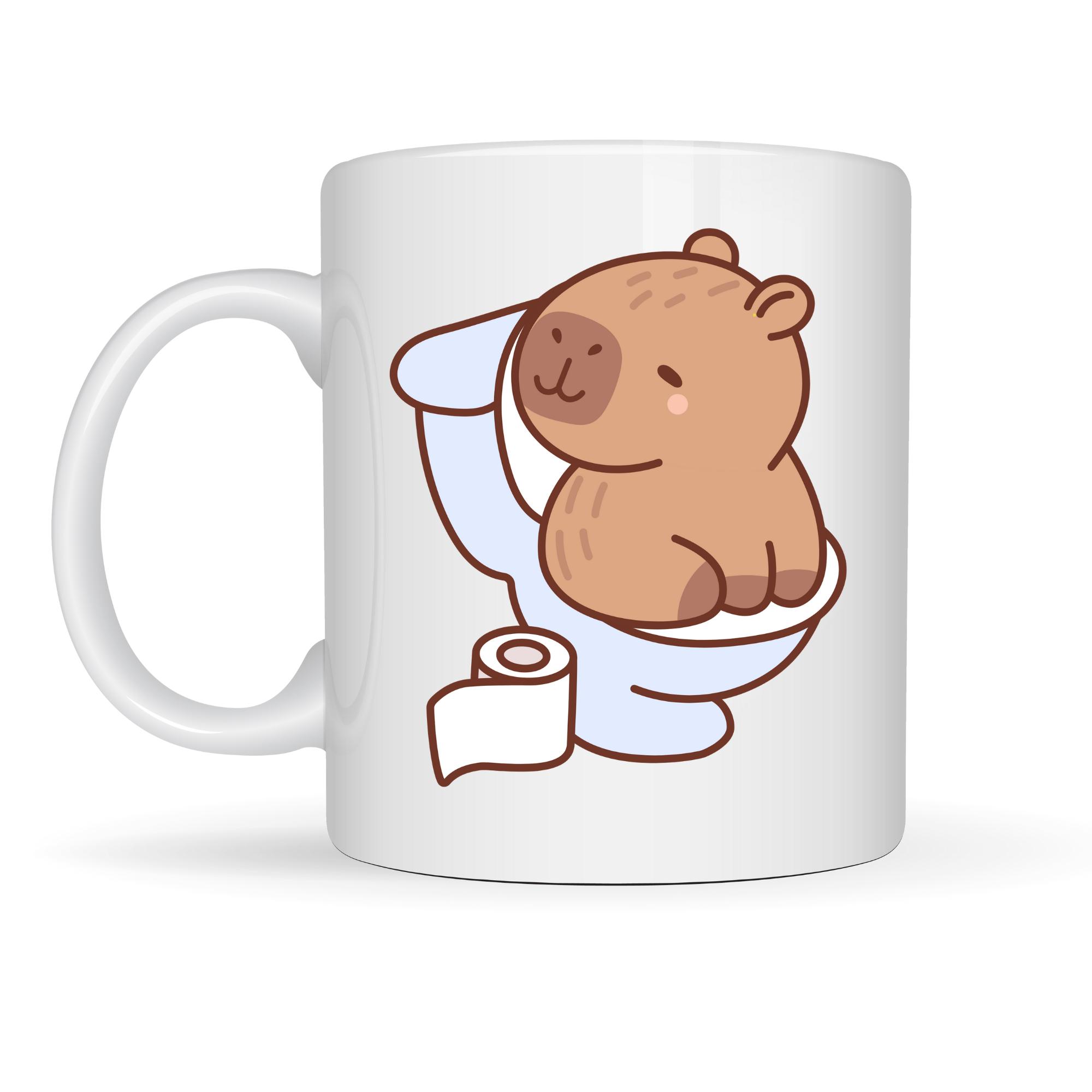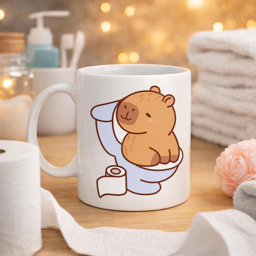 Bu sevimli tuvalette oturan kapibara desenli porselen kupa, mizahı sevenler için tasarlanmış eğlenceli ve özgün bir üründür.