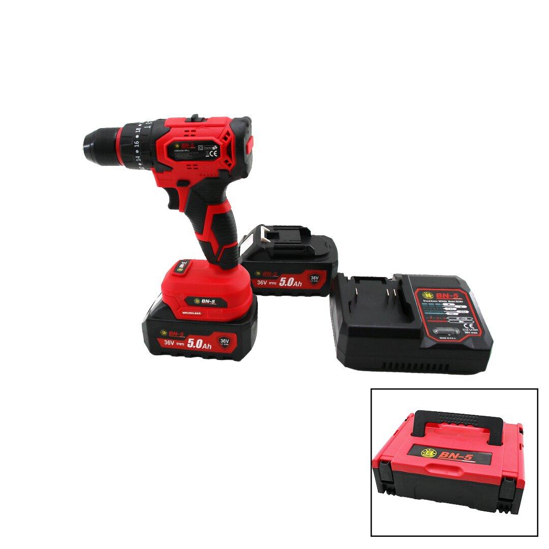 KÖMÜRSÜZ 36V - DARBELİ KIRMIZI ŞARJLI - YEDEK BATARYA - 5.0Ah PROF.MATKAP SETİ ÇANTALI F-136