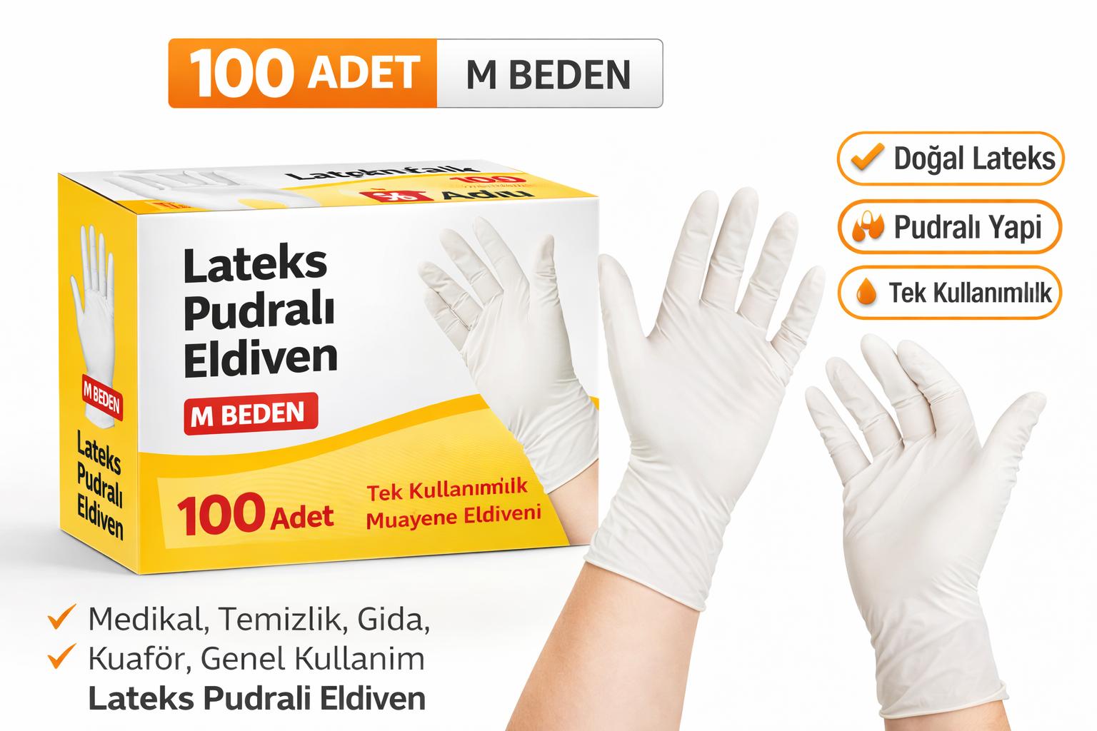 lateks pudralı eldiven, lateks eldiven m beden, pudralı eldiven 100lü, muayene eldiveni lateks, tek kullanımlık eldiven, medikal eldiven m beden, koruyucu eldiven lateks, hijyen eldiveni, lateks eldiven 100 adet, pudralı muayene eldiveni, temizlik eldiveni tek kullanımlık, gıda uyumlu lateks eldiven, orta beden eldiven, lateks eldiven kutu, ekonomik eldiven