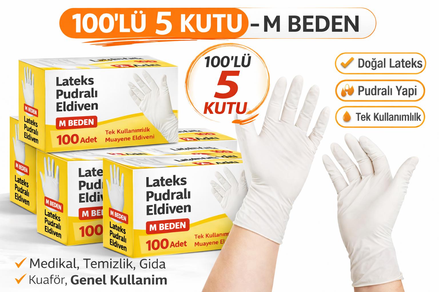 lateks pudralı eldiven, lateks eldiven m beden, pudralı eldiven 500 adet, 100lü 5 kutu eldiven, muayene eldiveni lateks, tek kullanımlık eldiven, medikal eldiven m beden, koruyucu eldiven lateks, hijyen eldiveni, lateks eldiven toplu satış, pudralı muayene eldiveni, temizlik eldiveni tek kullanımlık, gıda uyumlu lateks eldiven, orta beden eldiven, ekonomik eldiven seti, lateks eldiven 5 kutu