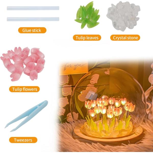 LED IŞIKLI LALE CAM KÜREÜrün ÖzellikleriŞeffaf cam fanus, yapay lale çiçekleri, kristal taşlar ve ahşap taban ile hazırlanmış bu dekoratif ürün, tamamen hazır halde gönderilmektedir. İçerisindeki lale çiçekleri ve kristal taşlar özenle yerleştirilmiş olup, kullanıcıdan herhangi bir kurulum veya düzenleme gerektirmez. LED ışıklarla donatılmış yapısı sayesinde sıcak ve yumuşak bir ışık yayarak bulunduğu ortama hoş ve huzurlu bir atmosfer kazandırır.Kompakt boyutu sayesinde masa, raf, komodin veya yatak odası dekorasyonu için ideal bir kullanım sunar. Ev dekorasyonunda, romantik sürprizlerde, özel günlerde hediye alternatifi olarak veya gece lambası amacıyla rahatlıkla tercih edilebilir. Düşük enerji tüketimine sahip LED ışıkları uzun ömürlü kullanım sağlarken, modern ve zarif tasarımı her türlü yaşam alanına uyum gösterir.
