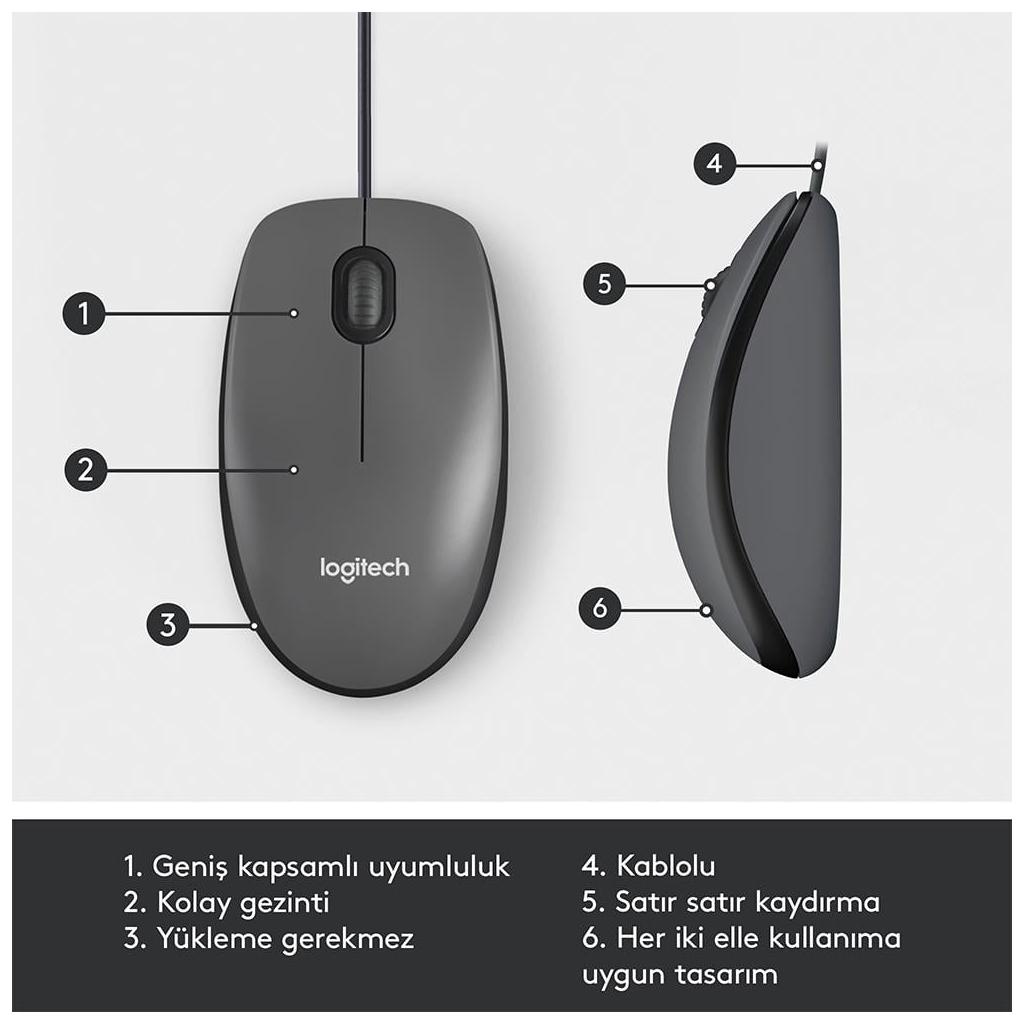 LOGITECH M100 KABLOLU MOUSE Özellikleri