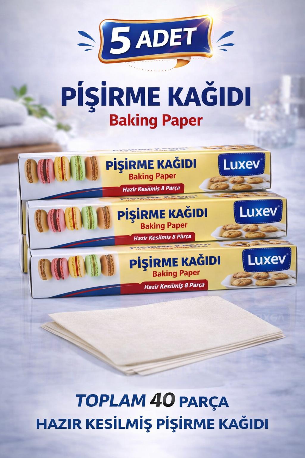 Luxev Pişirme Kağıdı Hazır Kesilmiş 8 Parça Yağlı Kağıt Fırın Kağıdı Baking Paper 5 Adet