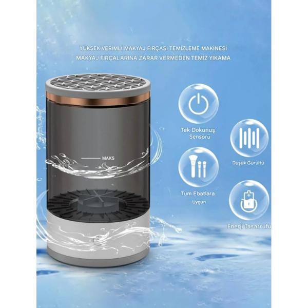 Makyaj fırçası temizleme makinesi, fırçalarınızı zahmetsizce temizlemenizi sağlayan pratik ve yenilikçi bir çözümdür. Tüm fırça boyutlarına uyumlu olarak tasarlanmıştır ve makyaj fırçalarına zarar vermeden derinlemesine temizlik sunar. Su haznesi üzerinde maksimum seviye göstergesi bulunur ve içerisine fırçalar kolayca yerleştirilir. Tek dokunuş sensörü sayesinde cihaz hızlıca çalışmaya başlar ve düşük gürültülü motoru ile konforlu bir kullanım sağlar. Enerji tasarruflu yapısı sayesinde çevre dostu bir üründür. Günlük makyaj rutininin hijyenik bir şekilde devam etmesi için ideal bir üründür.