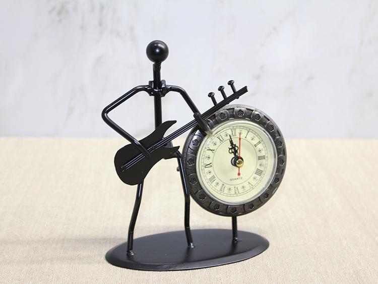 Metal saatli gitar çalan müzisyen figürü estetik ve modern tasarımıyla dekoratif bir masa saati olarak kullanılabilir. Siyah metal malzemeden üretilen ürün, gitar çalan müzisyen görünümüyle dikkat çekici bir dekoratif obje özelliği taşır. Hem saat işlevi hem de sanatsal tasarımıyla ofis, salon veya çalışma alanlarında şık bir tamamlayıcı aksesuar olur. Dayanıklı yapısı ve zarif görünümü sayesinde hediye alternatifi olarak da tercih edilebilir.