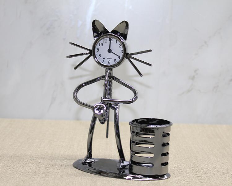 1 adet Metal Saksafon Çalan Müzisyen Kedi Saat Ve Kalemlik