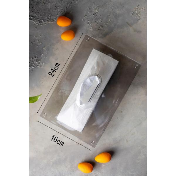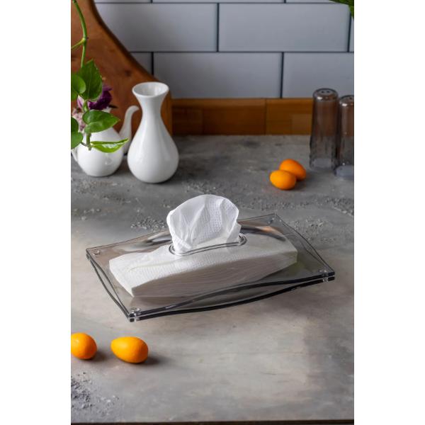 Şık ve sade tasarımıyla dikkat çeken modern peçetelik, şeffaf yapısıyla her ortama uyum sağlar. 24 cm x 16 cm ölçülerinde olan ürün, BPA içermeyen kaliteli ve sert plastik malzemeden üretilmiştir. Hem evde hem ofiste hem de restoran ve kafe gibi alanlarda hijyenik ve estetik bir sunum aracı olarak kullanılabilir. Hafif ve dayanıklı yapısı sayesinde uzun süreli kullanım sağlar. Modern dekorasyon anlayışına uyumlu formuyla masa düzenine zarif bir dokunuş katar.